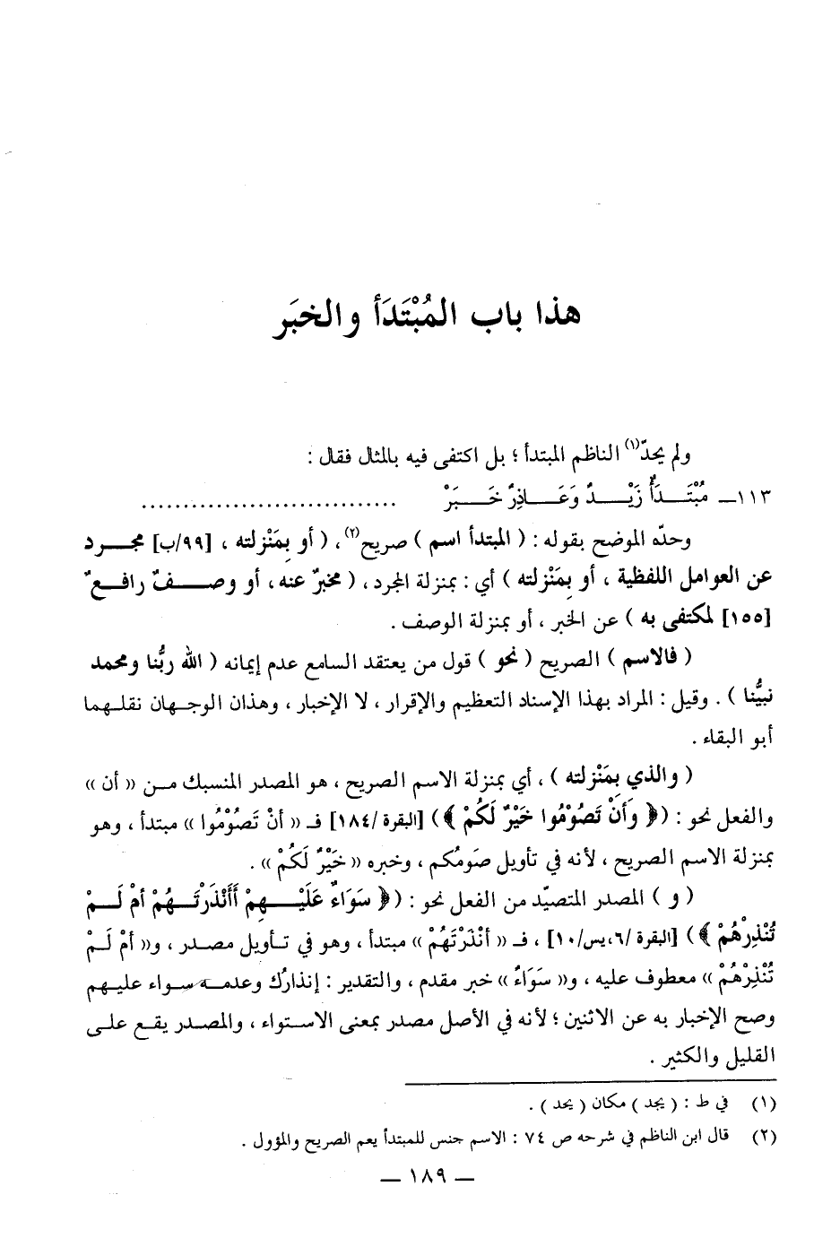 2 قال ابن الناظم في شرحه ص74: الاسم جنس للمبتدأ يعم الصريح والمؤول.