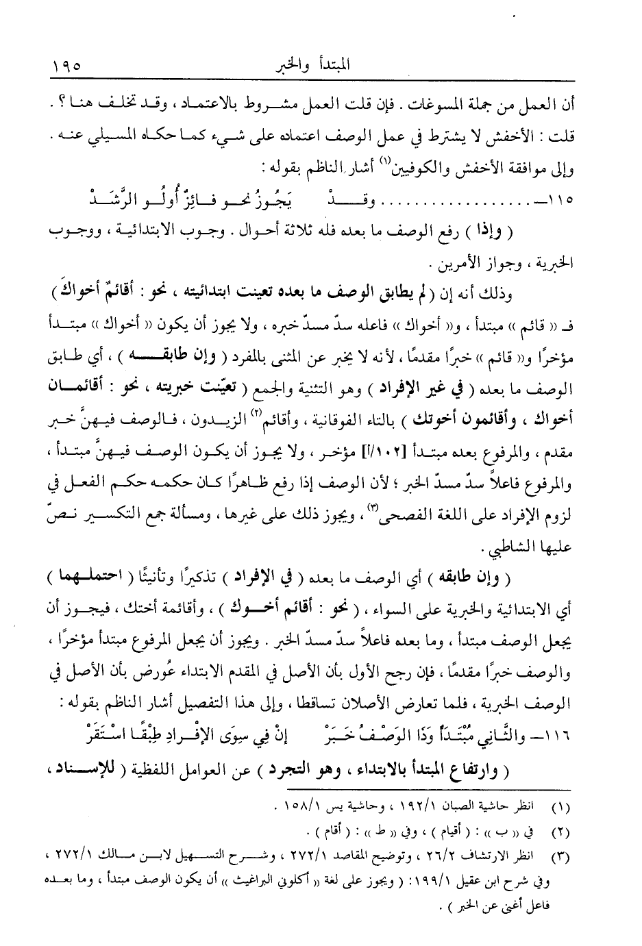 1 انظر حاشية الصبان 1/ 192، وحاشية يس 1/ 158.
