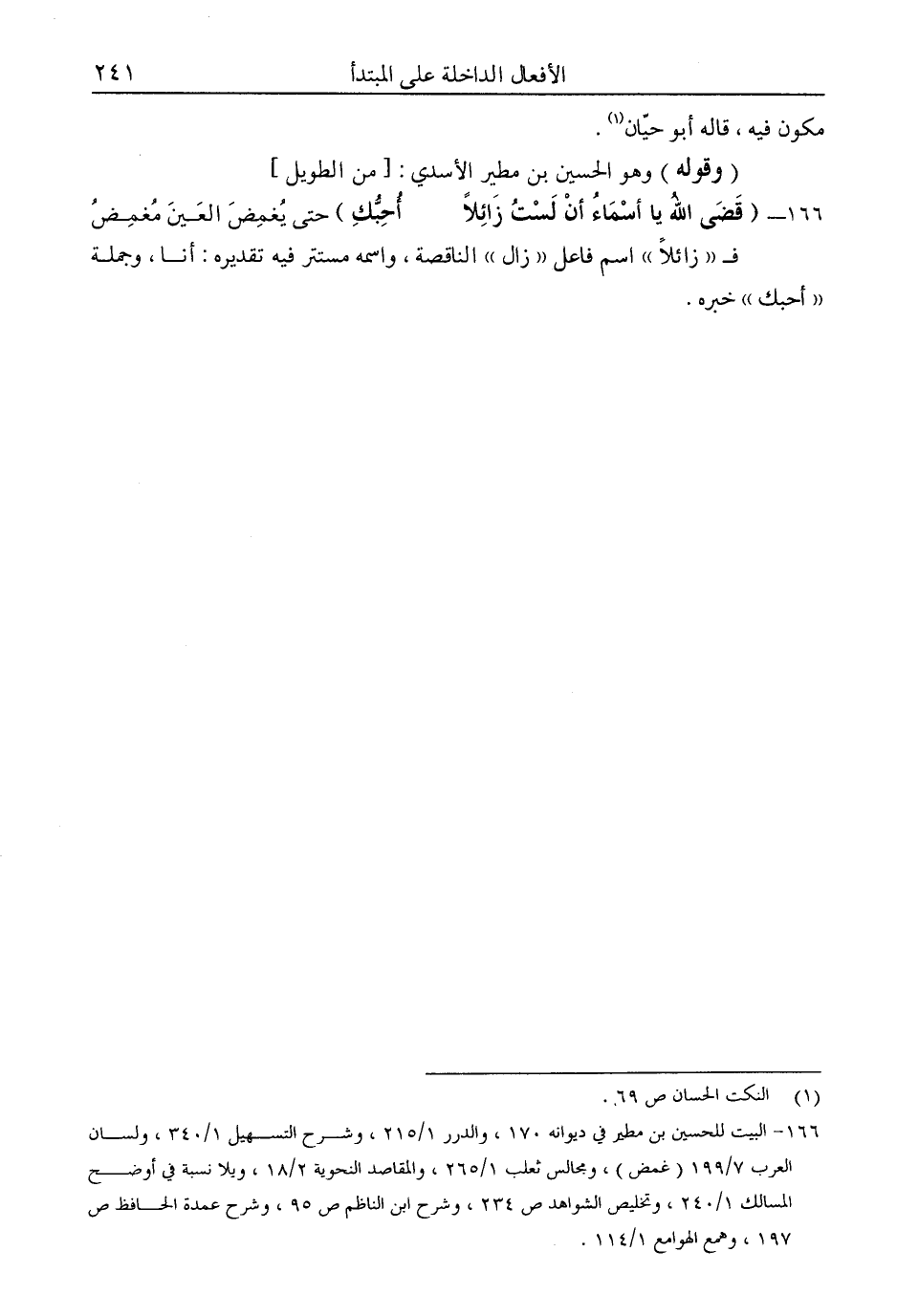 166- البيت للحسين بن مطير في ديوانه 170, والدرر 1/ 215، وشرح التسهيل 1/ 340، ولسان العرب 7/ 199، "غمض" ومجالس ثعلب 1/ 265، والمقاصد النحوية 2/ 18، وبلا نسبة في أوضح المسالك 1/ 240، وتخليص الشواهد ص234، وشرح ابن الناظم ص95، وشرح عمدة الحافظ ص197، وهمع الهوامع 1/ 114.