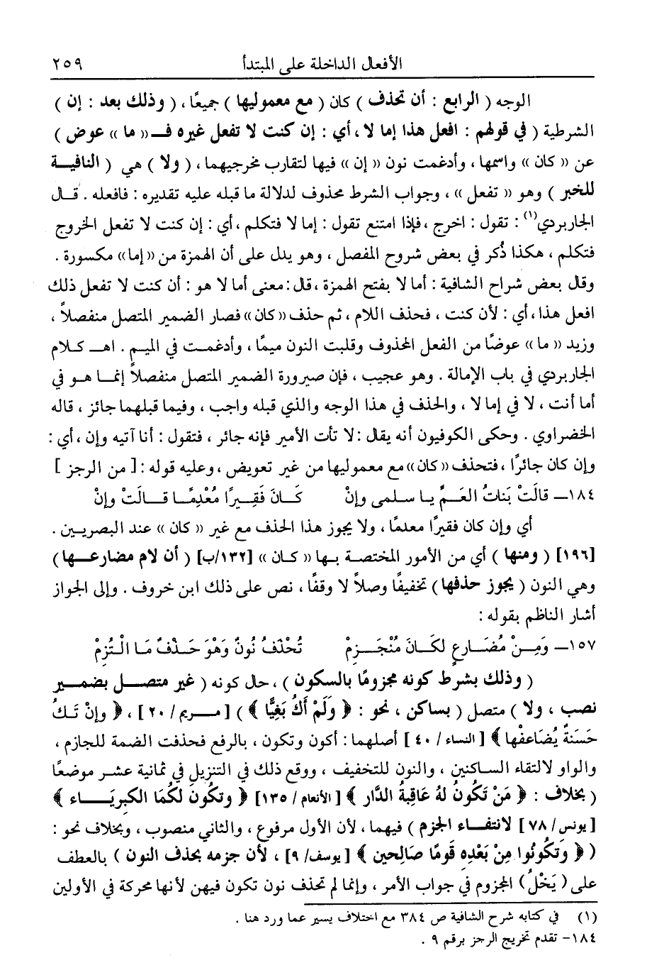 1 في كتابه شرح الشافية ص384، مع اختلاف يسير عما ورد هنا.