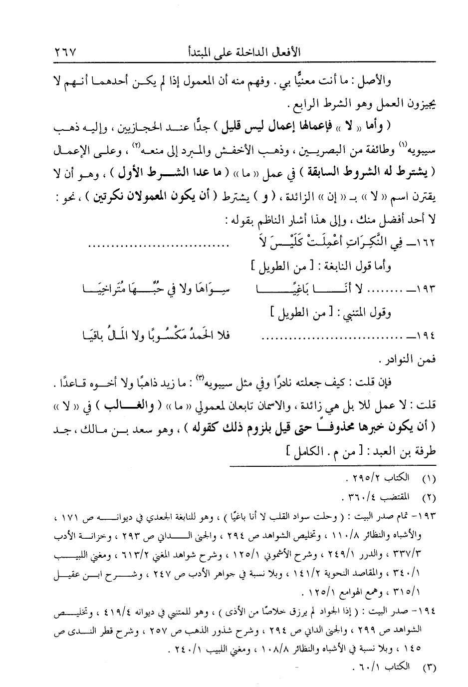 فإن قلت: كيف جعلته نادرًا وفي مثل سيبويه3: ما زيد ذاهبا ولا أخوه قاعدًا.