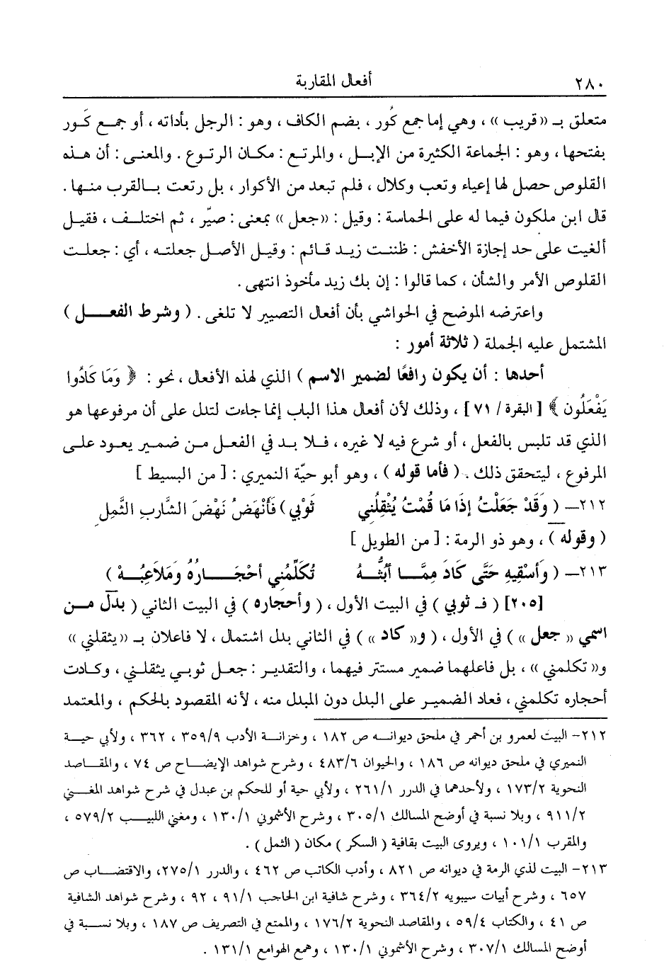 أحدها: أن يكون رافعًا لضمير الاسم" الذي لهذه لأفعال. نحو: {وَمَا كَادُوا يَفْعَلُونَ} [البقرة: 71] ، وذلك لأن أفعال هذا الباب إنما جاءت لتدل على أن مرفوعها هو الذي قد تلبس بالفعل. أو شرع فيه لا غيره. فلا بد في الفعل من ضمير يعود على المرفوع. ليتحقق ذلك. "فأما قوله"، وهو أبو حية النميري: [من البسيط]