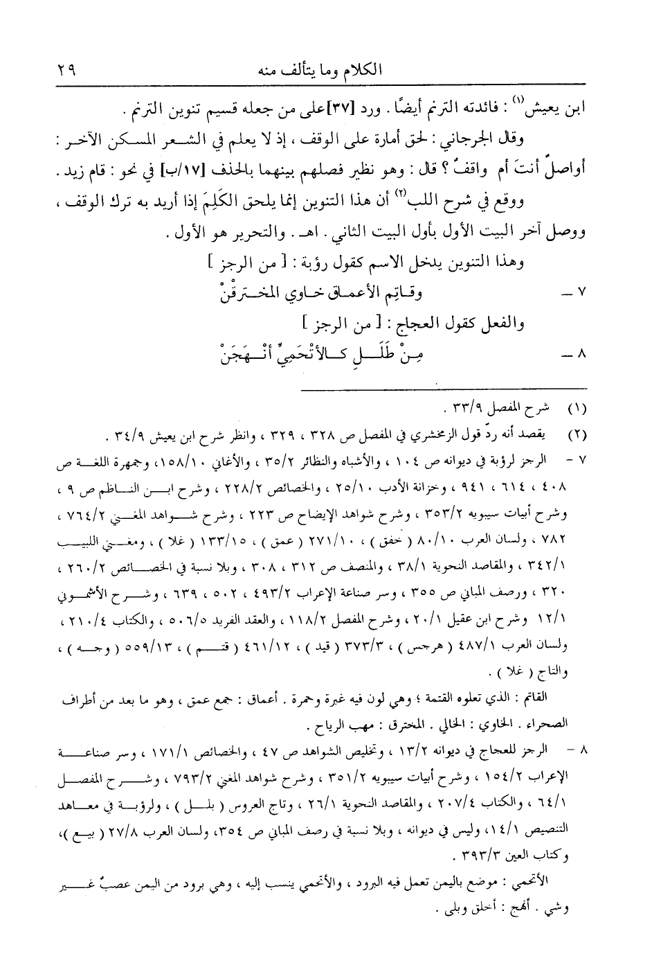 2 يقصد أنه رد قول الزمخشري في المفصل ص328، 329، وانظر شرح ابن يعيش 9/ 34.