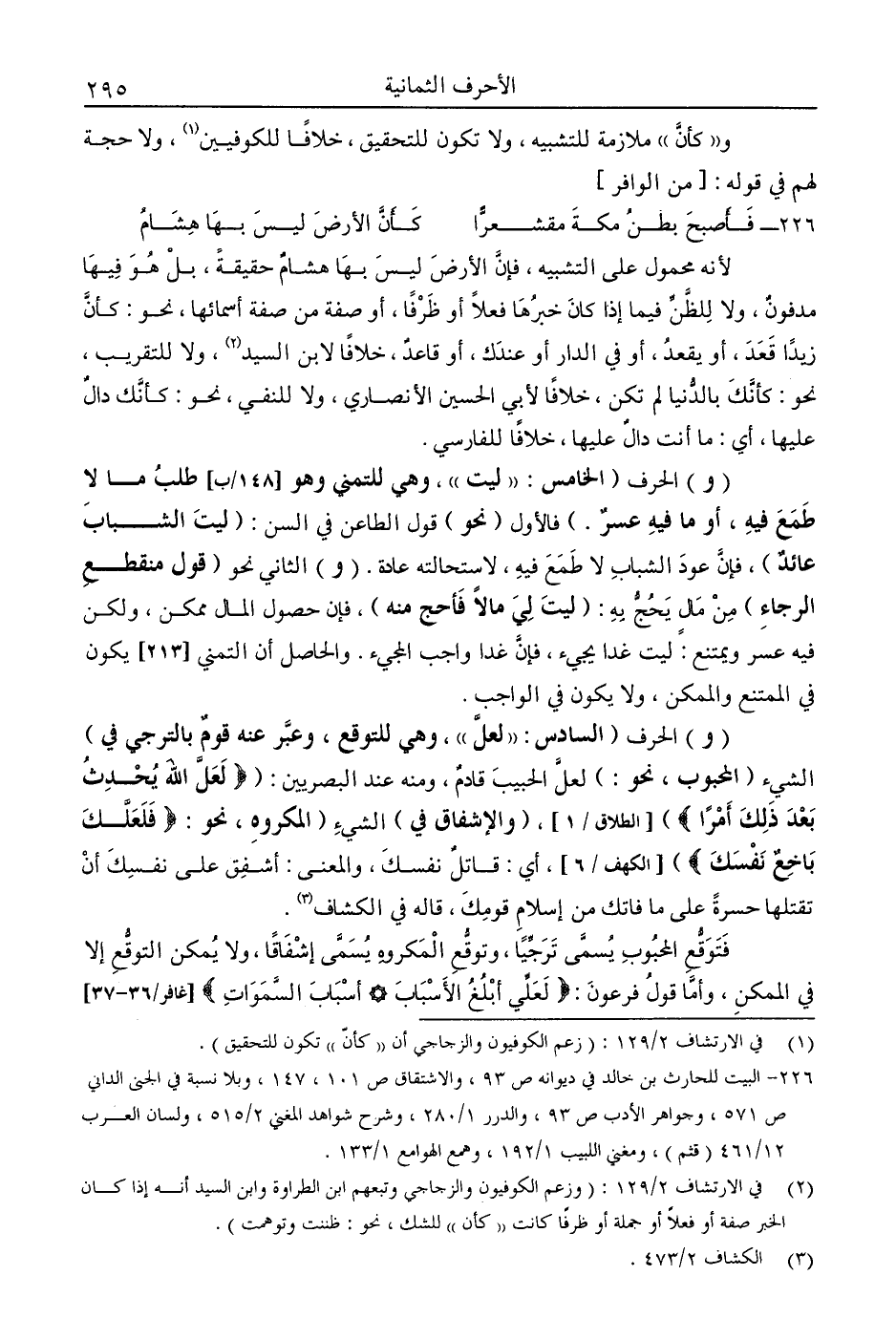 1 في الارتشاف 2/ 129: "زعم الكوفيون والزجاجي أن "كأن" تكون للتحقيق".