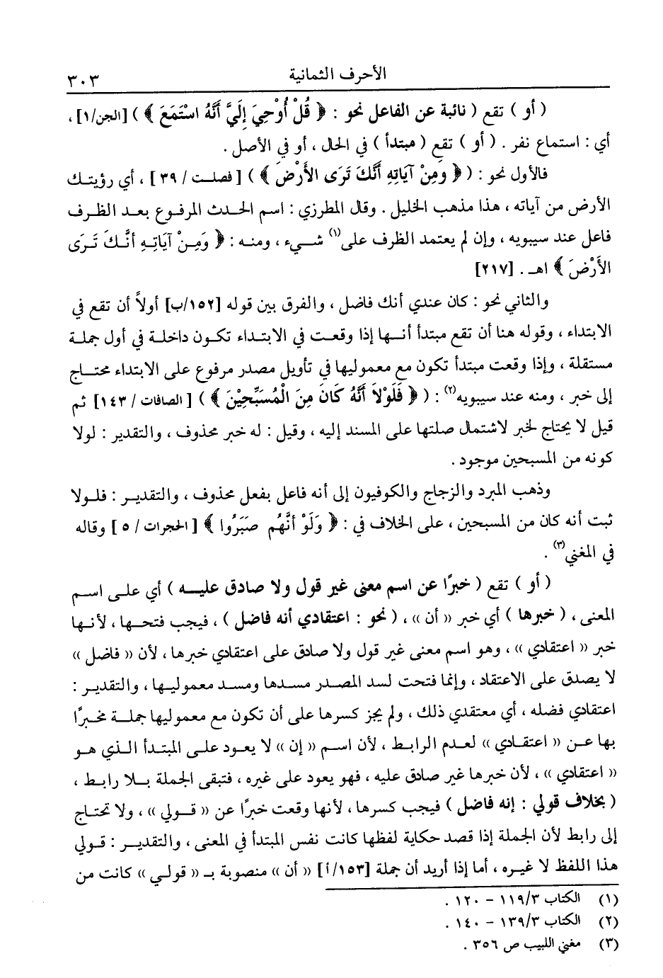 وذهب المبرد والزجاج والكوفيون إلى أنه فاعل بفعل محذوف، والتقدير: فلولا ثبت أنه كان من المسبحين، على الخلاف في: {وَلَوْ أَنَّهُمْ صَبَرُوا} [الحجرات: 5] وقاله في المغني3.