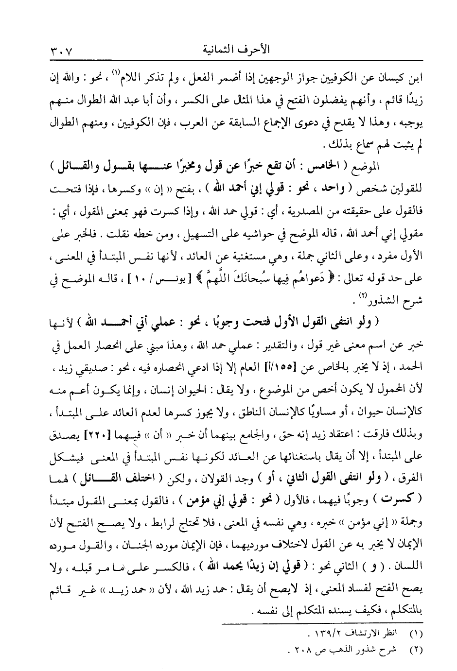 2 شرح شذور الذهب ص208.