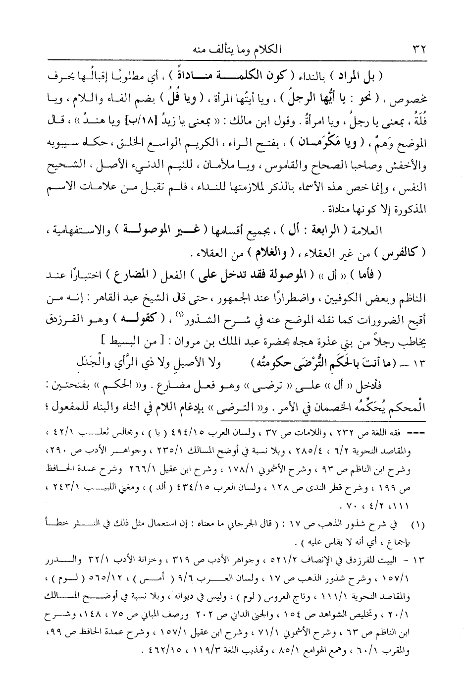 "بل المراد" بالنداء "كون الكلمة مناداة"، أي: مطلوبا إقبالها بحرف مخصوص، "نحو: يا أيها الرجل"، ويا أيتها المرأة، "ويا فُلُ" بضم الفاء واللام، ويا فُلَة، بمعنى يا رجل، ويا امرأة. وقول ابن مالك: "بمعنى يا زيد ويا هند"، قال الموضح وهم، "ويا مكرمان"، بفتح الراء، الكريم الواسع الخلق، حكاه سيبويه والأخفش وصاحبا الصحاص والقاموس، ويا ملأمان، للئيم الدنيء الأصل، الشحيح النفس، وإنما خص هذه الأسماء بالذكر لملازمتها للنداء، فلم تقبل من علامات الاسم المذكورة إلا كونها مناداة.