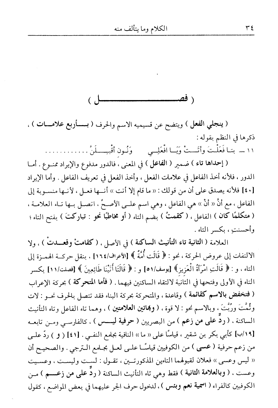 "ينجلي الفعل" ويتضح عن قسيميه الاسم والحرف "بأربع علامات"، ذكرها في النظم بقوله: