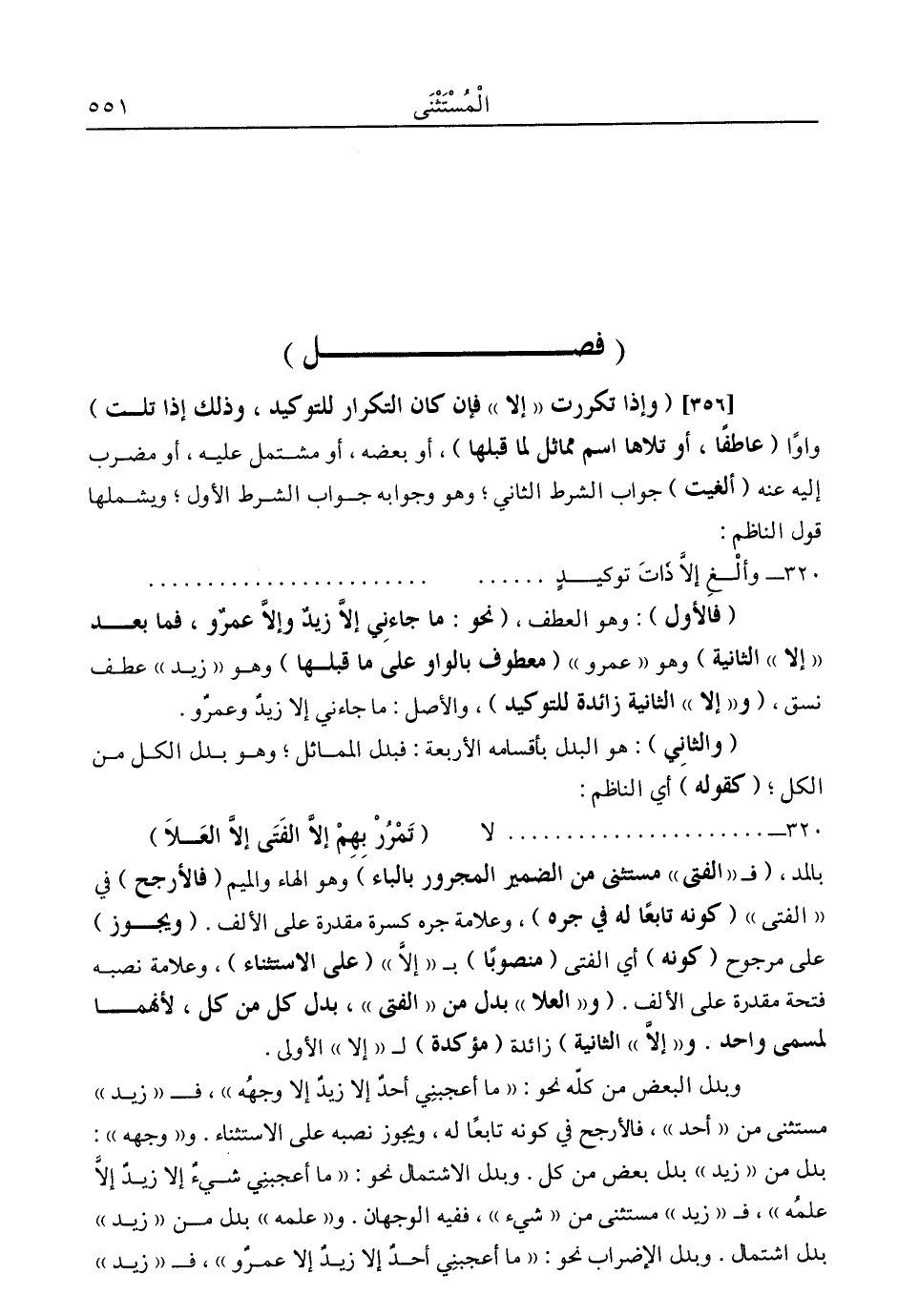 "وإذا تكررت "إلا" فإن كان التكرار للتوكيد، وذلك إذا تلت" واوً "عاطفًا، أو تلاها اسم مماثل لما قبلها". أو بعضه، أو مشتمل عليه، أو مضرب إليه عنه "ألغيت" جواب الشرط الثاني؛ وهو جوابه جواب الشرط الأول؛ ويشملها قول الناظم: 320-