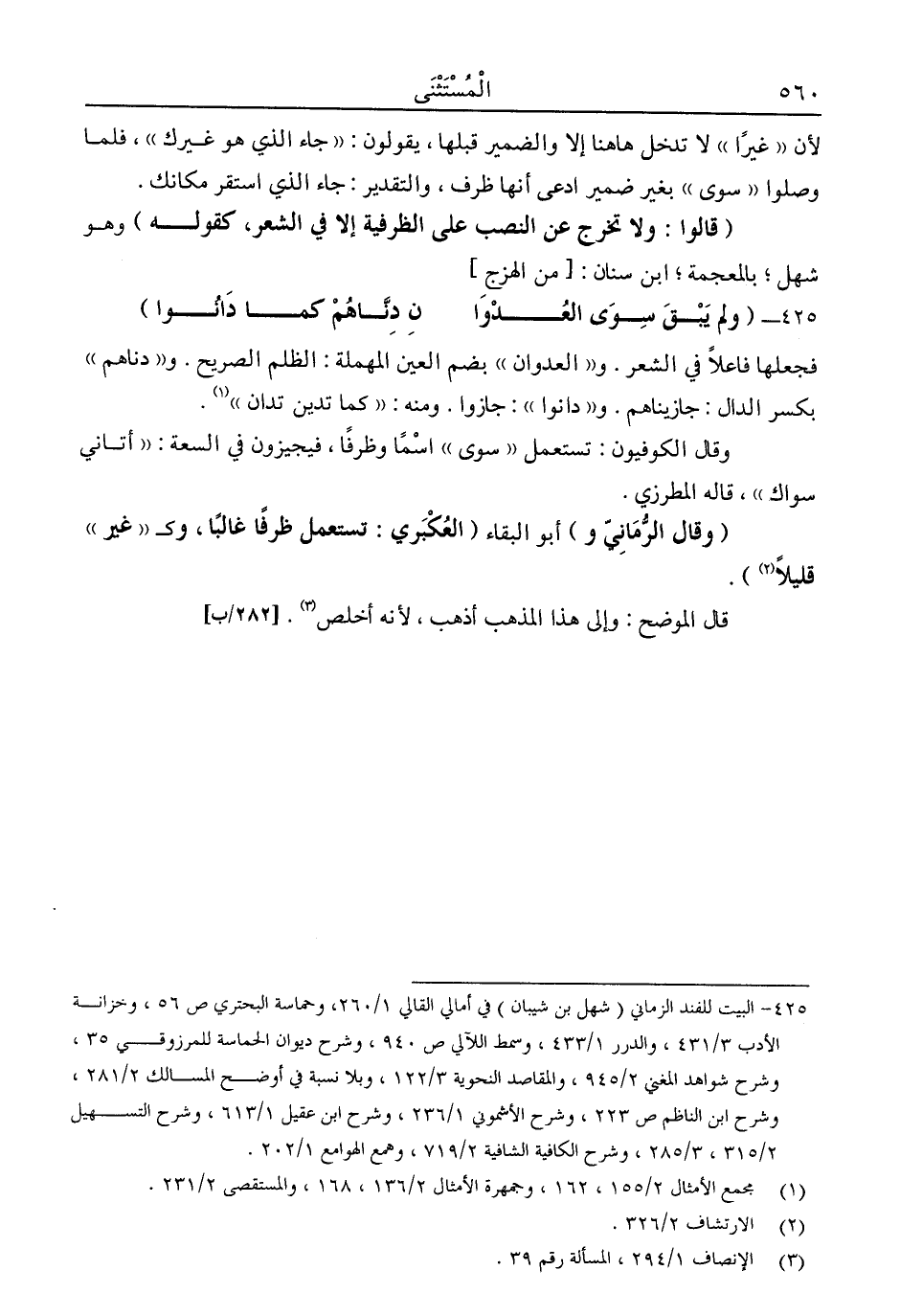 425- البيت للفند الزماني "شهل بن شيبان" في أمالي القالي 1/ 260، وحماسة البحتري ص56، وخزانة الأدب 3/ 431، والدرر 1/ 433، وسمط اللآلي ص940، وشرح ديوان الحماسة للمرزوقي 35، وشرح شواهد المغني 2/ 945، والمقاصد النحوية 3/ 122، وبلا نسبة في أوضح المسالك 2/ 281، وشرح ابن الناظم ص223، وشرح الأشموني 1/ 236، وشرح ابن عقيل 1/ 613، وشرح التسهيل 2/ 315، 3/ 285، وشرح الكافية الشافية 2/ 719، وهمع الهوامع 1/ 202.