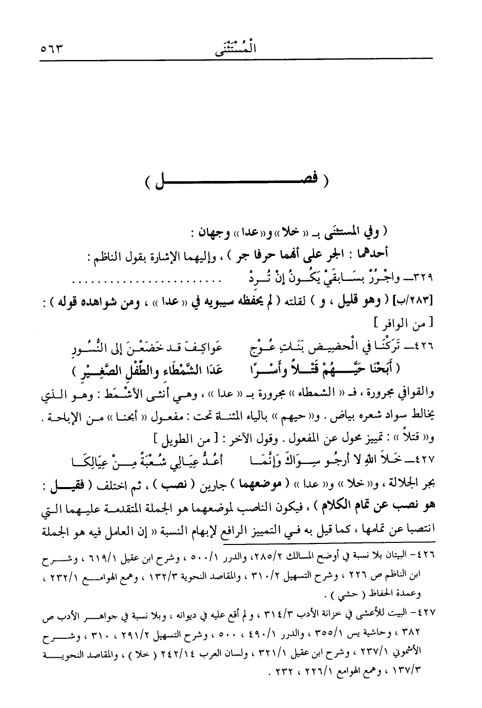 "وفي المستثنى بـ"خلا" و"عدا" وجهان: