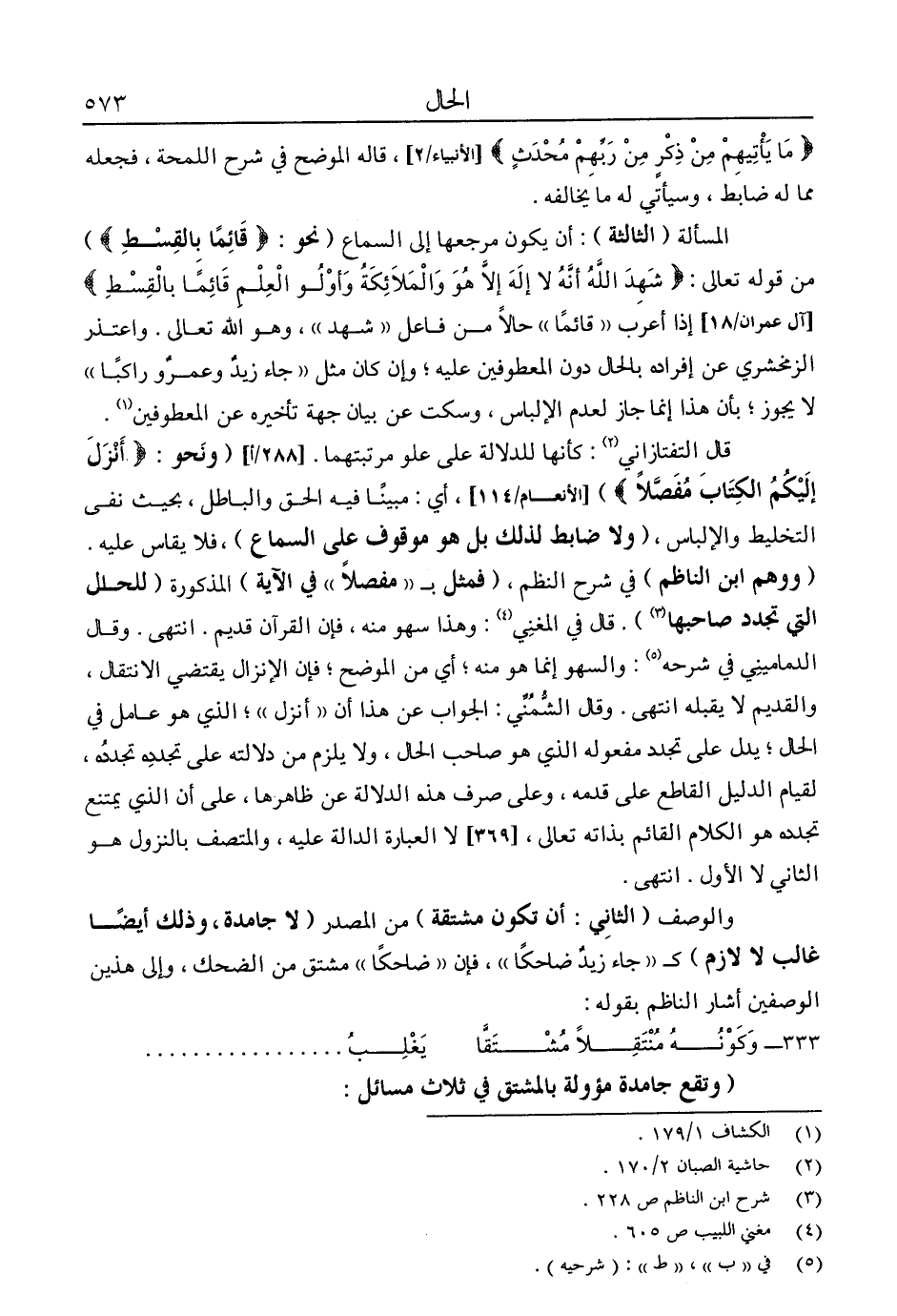 "وتقع جامدة مؤولة بالمشتق في ثلاث مسائل: