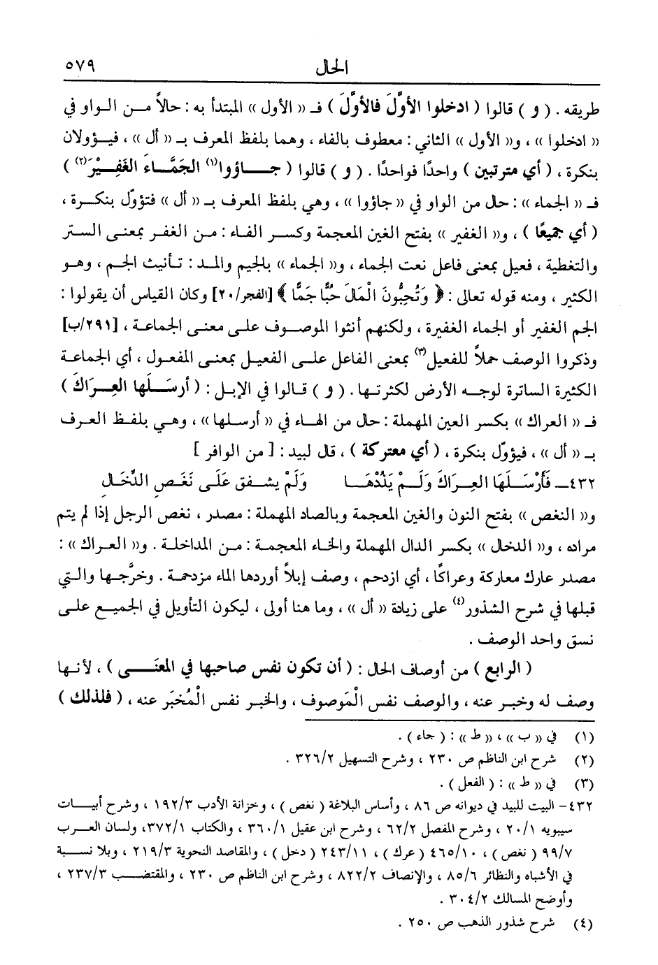 4 شرح شذور الذهب ص250.
