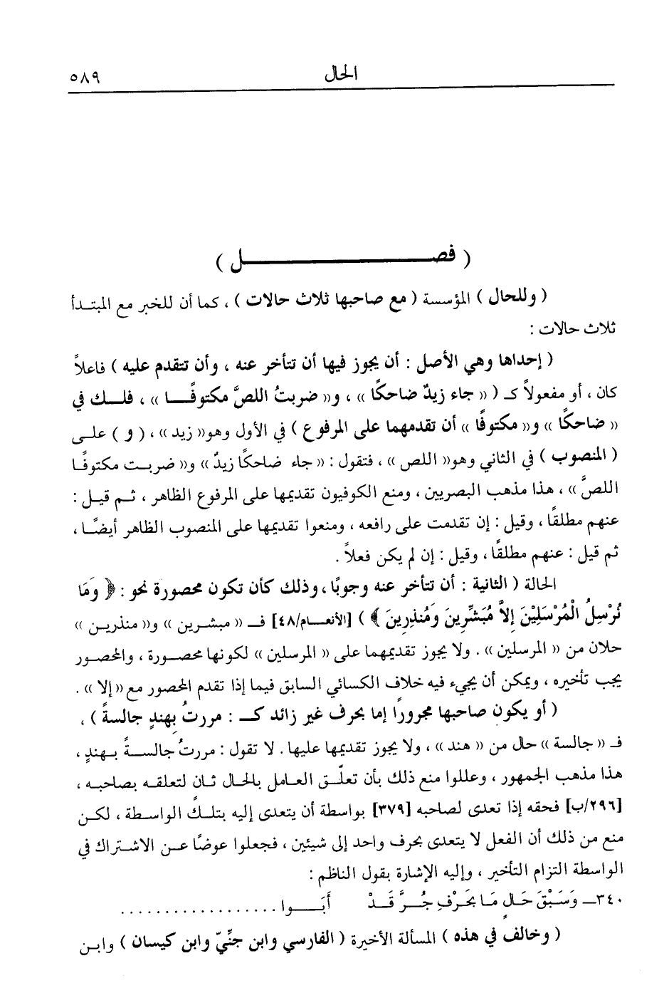 "وللحال" المؤسسة "مع صاحبها ثلاث حالات"، كما أن للخبر مع المبتدأ ثلاث حالات: