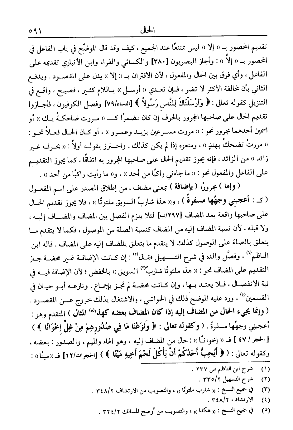 5 في جميع النسخ: "هكذا"، والتصويب من أوضح المسالك 2/ 324.