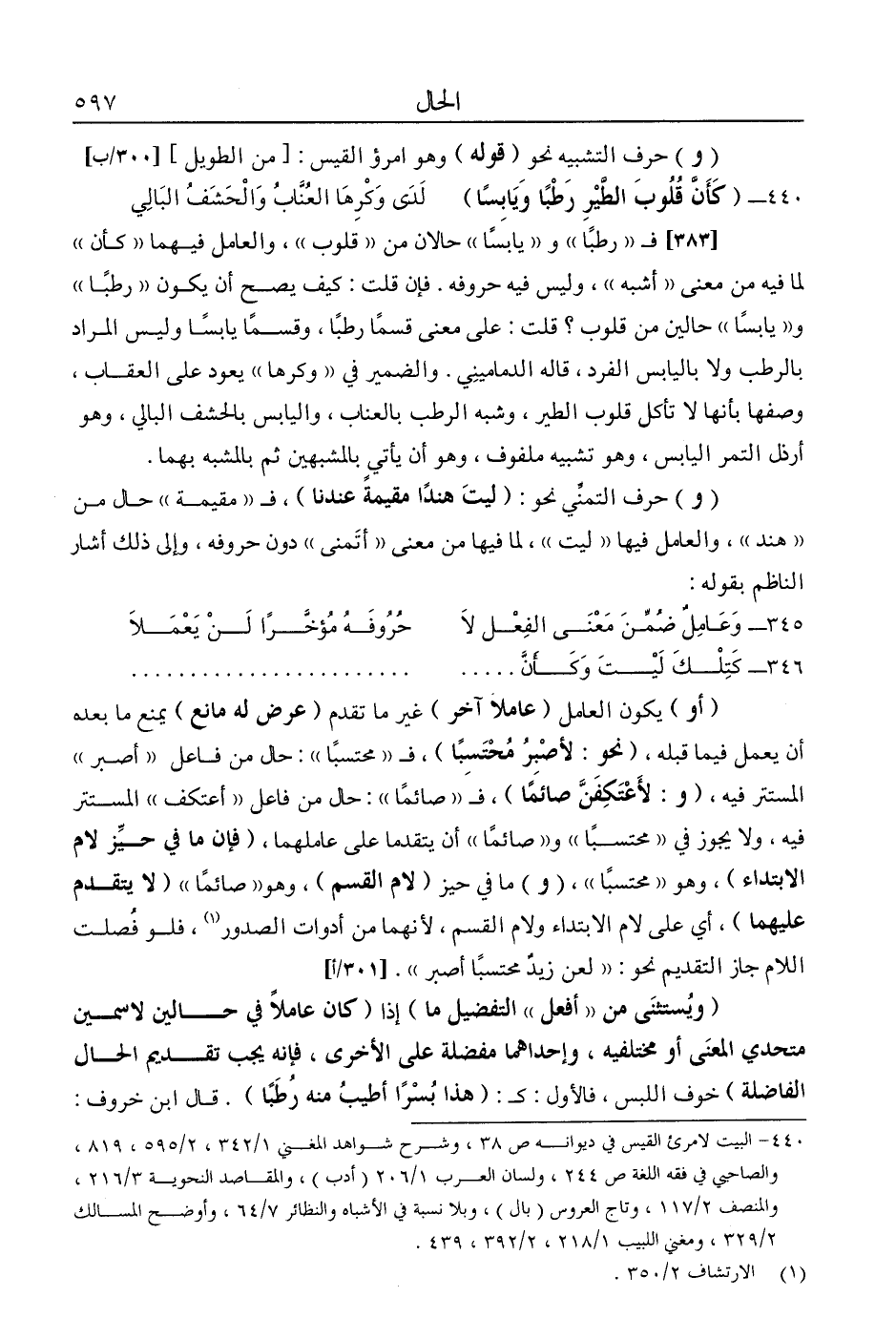 440- البيت لامرئ القيس في ديوانه ص38، وشرح شواهد المغني 1/ 342، 2/ 595، 819، والصاحبي في فقه اللغة ص244، ولسان العرب 1/ 206، "أدب" والمقاصد النحوية 3/ 216، والمنصف 2/ 117، وتاج العروس "بال" وبلا نسبة في الأشباه والنظائر 7/ 64، وأوضح المسالك 2/ 329، ومغني اللبيب 1/ 218، 2/ 392، 439.