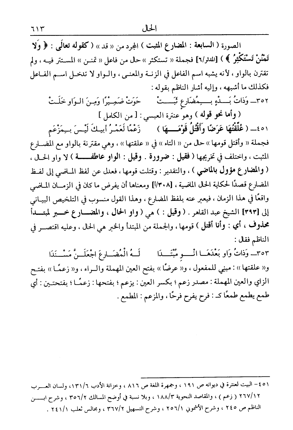 451- البيت لعنترة في ديوانه ص191، وجمهرة اللغة ص816، وخزانة الأدب 6/ 131، ولسان العرب 12/ 267 "زعم"، والمقاصد النحوية 3/ 188، وبلا نسبة في أوضح المسالك 2/ 356، وشرح ابن الناظم ص245، وشرح الأشموني 1/ 256، وشرح التسهيل 2/ 367، ومجالس ثعلب 1/ 241.
