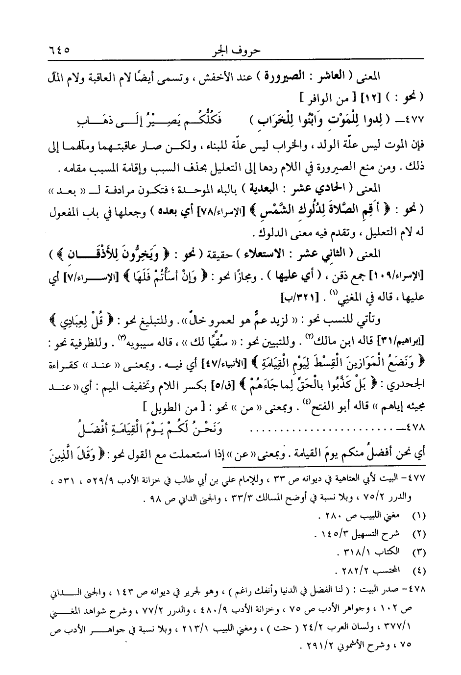 477- البيت لأبي العتاهية في ديوانه ص33، وللإمام علي بن أبي طالب في خزانة الأدب 9/ 529، 531، والدرر 2/ 75، وبلا نسبة في أوضح المسالك 3/ 33 والجنى الداني ص98.