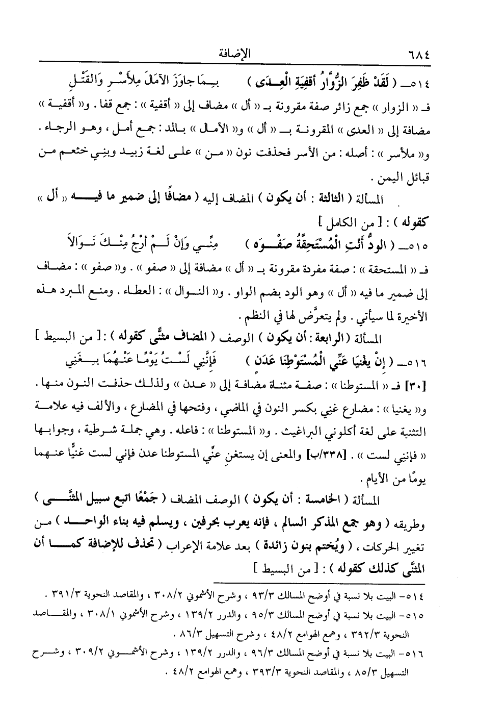 516- البيت بلا نسبة أوضح المسالك 3/ 96، والدرر 2/ 139، وشرح الأشموني 2/ 309، وشرح التسهيل 3/ 85، والمقاصد النحوية 3/ 393، وهمع الهوامع 2/ 48.