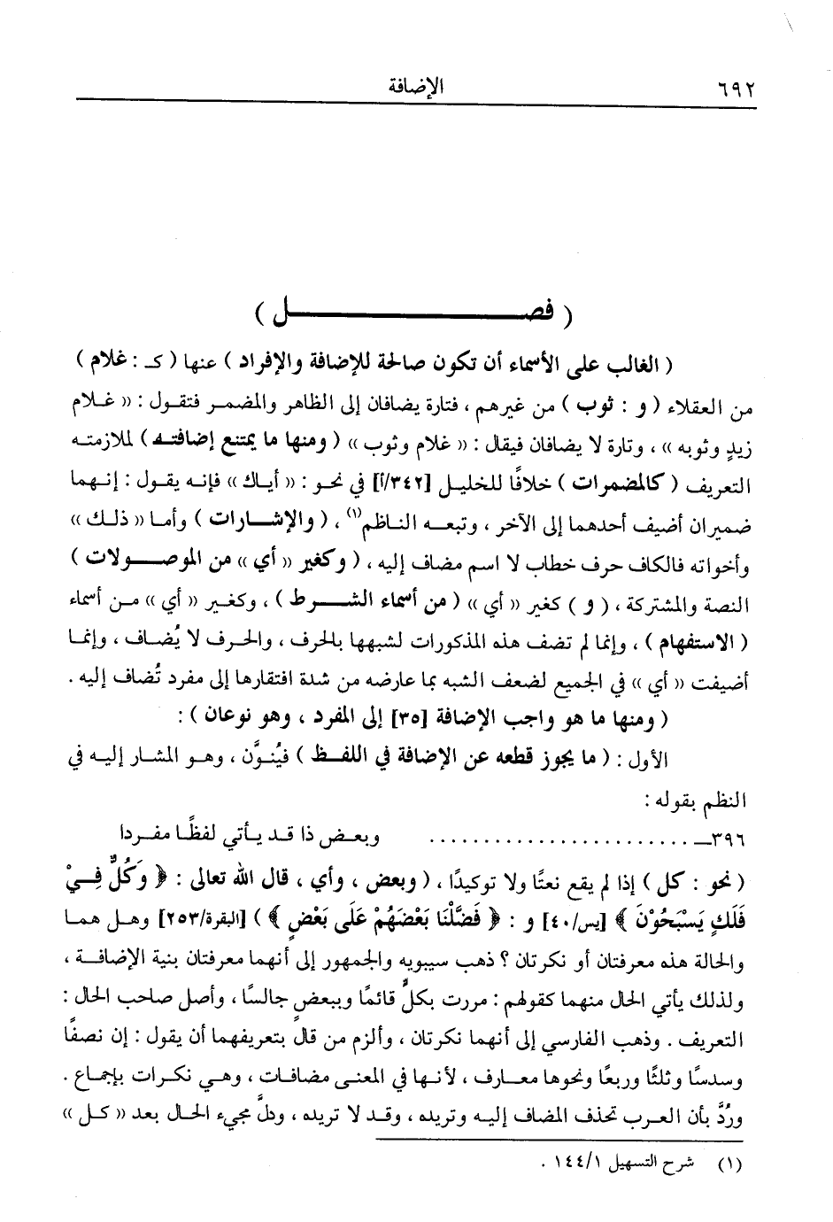 "ومنها ما هو واجب الإضافة إلى المفرد، وهو نوعان":