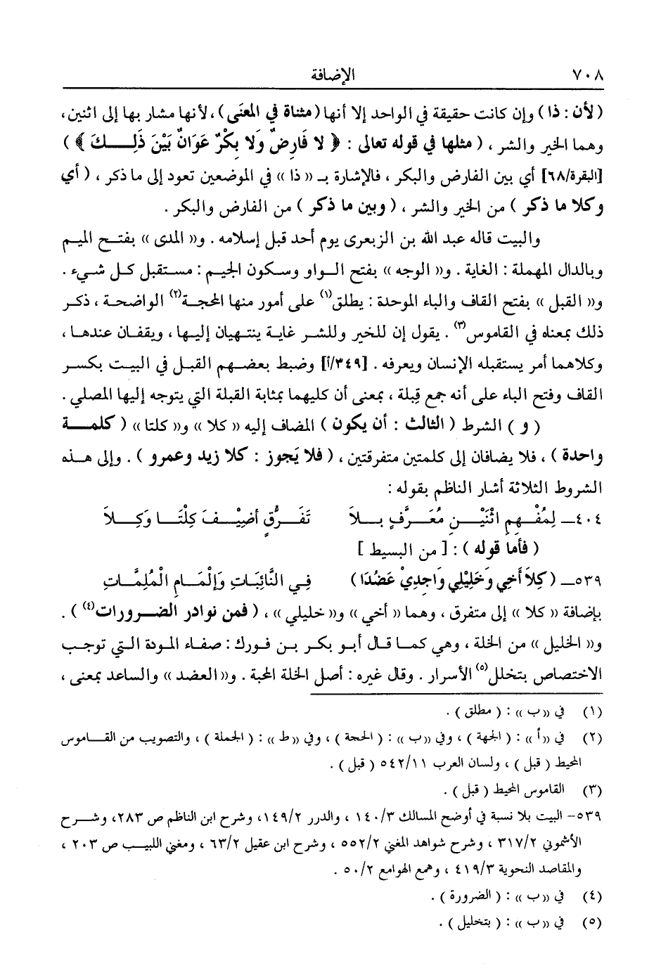 بإضافة "كلا" إلى متفرق، وهما "أخي" و"خليلي" فمن نوادر الضرورات"4.