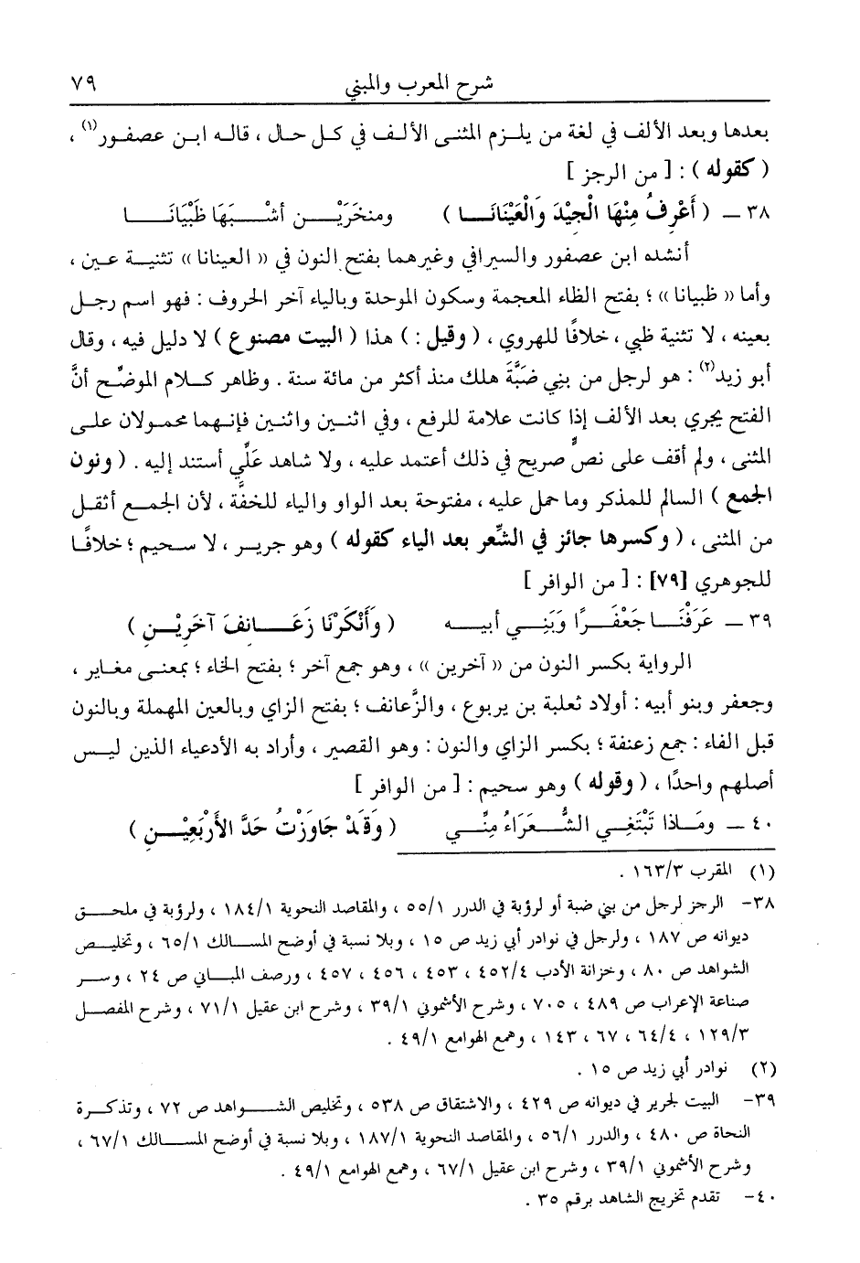 39- البيت لجرير في ديوانه ص429، والاشتقاق ص538، وتخليص الشواهد ص72، وتذكرة النحاة ص480، والدرر 1/ 56، والمقاصد النحوية 1/ 187، وبلا نسبة في أوضح المسالك 1/ 67، وشرح الأشموني 1/ 39 وشرح ابن عقيل 1/ 67, وهمع الهمع 1/ 49.