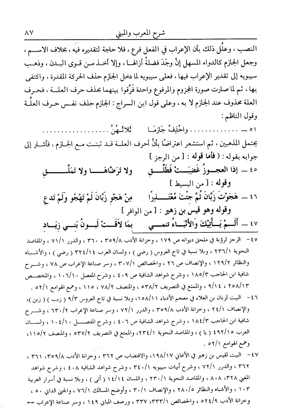 47- البيت لقيس بن زهير في الأغاني 17/ 198، والاقتضاب ص362، وخزانة الأدب 8/ 359، 361، 362، والدرر 1/ 72، وشرح أبيات سيبويه 1/ 340، وشرح شواهد الشافية 408، وشرح شواهد المغني 328، 808، والمقاصد النحوية 1/ 230، واللسان 14/ 14 "أتى"، وبلا نسبة في أسرار العربية 103، والأشباه والنظائر 5/ 280، والإنصاف 1/ 30، وأوضح المسالك 1/ 76، والجنى الداني 50، وخزانة الأدب 9/ 524، والخصائص 1/ 333، 337، ورصف المباني 149، وسر صناعة الإعراب 1/ 87، 2/ 631، وشرح الأشموني 1/ 168، وشرح شافية ابن الحاجب 3/ 184، وشرح المفصل 8/ 24، 10/ 104، والكتاب 3/ 316، واللسان 5/ 75، "قدر"، 14/ 324 "رضي"، 14/ 434 "شظي"، 15/ 492 "يا"، والمحتسب 1/ 67، 215، ومغني اللبيب 1/ 108، 2/ 387، والمقرب 1/ 50، 203، والممتع في التصريف 2/ 537، والمنصف 2/ 81، 114، 115، وهمع الهوامع 1/ 52.