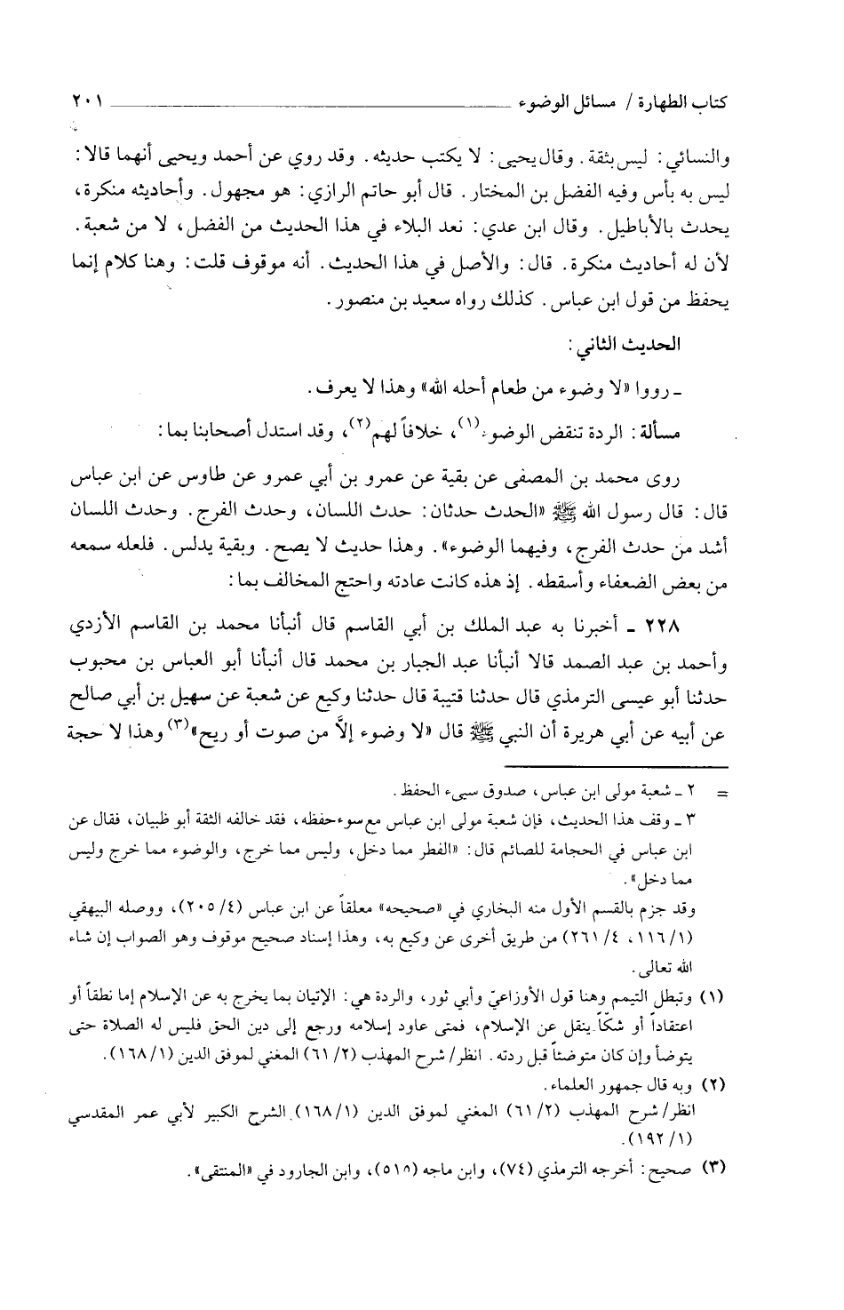 228 - أَخْبَرَنَا بِهِ عَبْدُ الْمَلِكِ بْنُ أَبِي الْقَاسِمِ قَالَ أَنْبَأَنَا مُحَمَّدُ بْنُ الْقَاسِمِ الْأَزْدِيُّ وَأَحْمَدُ بْنُ عَبْدِ الصَّمَدِ قَالَا أَنْبَأَنَا عَبْدُ الْجَبَّارِ بْنُ مُحَمَّدٍ قَالَ أَنْبَأَنَا أَبُو الْعَبَّاسِ بْنُ مَحْبُوبٍ حَدَّثَنَا أَبُو عِيسَى التِّرْمِذِيُّ قَالَ حَدَّثَنَا قُتَيْبَةُ قَالَ حَدَّثَنَا وَكِيعٌ عَنْ شُعْبَةَ عَنْ سُهَيْلِ بْنِ أَبِي صَالِحٍ عَنْ أَبِيهِ عَنْ أَبِي هُرَيْرَةَ أَنّ النَّبِيَّ صَلَّى اللَّهُ عَلَيْهِ وَسَلَّمَ قَالَ لَا وُضُوءَ إِلَّا مِنْ صَوْتٍ أَوْ رِيحٍ وَهَذَا لَا حُجَّةَ