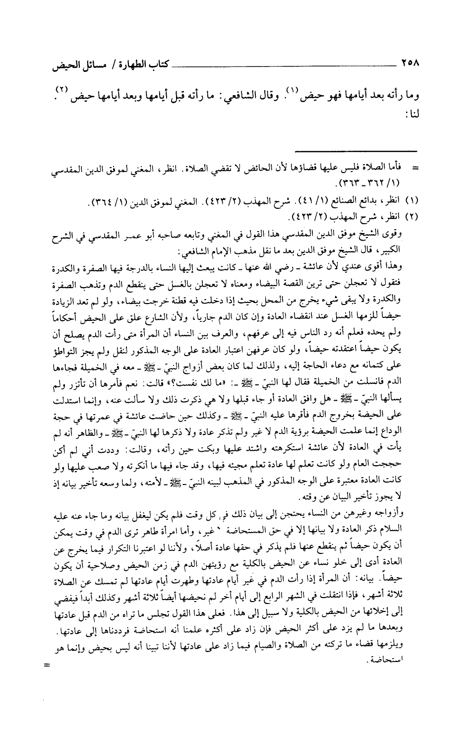 وَمَا رَأَتْهُ بَعْدَ أَيَّامِهَا فَهُوَ حيض وقَالَ الشَّافِعِيُّ مَا رَأَتْهُ قَبْلَ أَيَّامِهَا وَبَعْدَ أَيَّامِهَا حَيْضٌ لَنَا