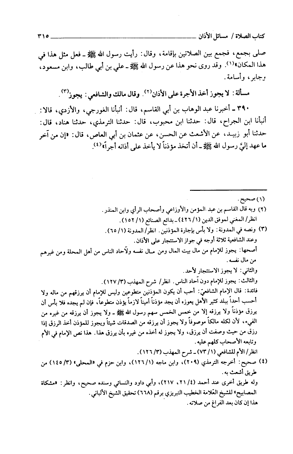 مَسْأَلَةٌ لَا يَجُوزُ أَخْذُ الْأُجْرَةِ عَلَى الْأَذَان وَقَالَ مَالك والشَّافِعِي يَجُوزُ