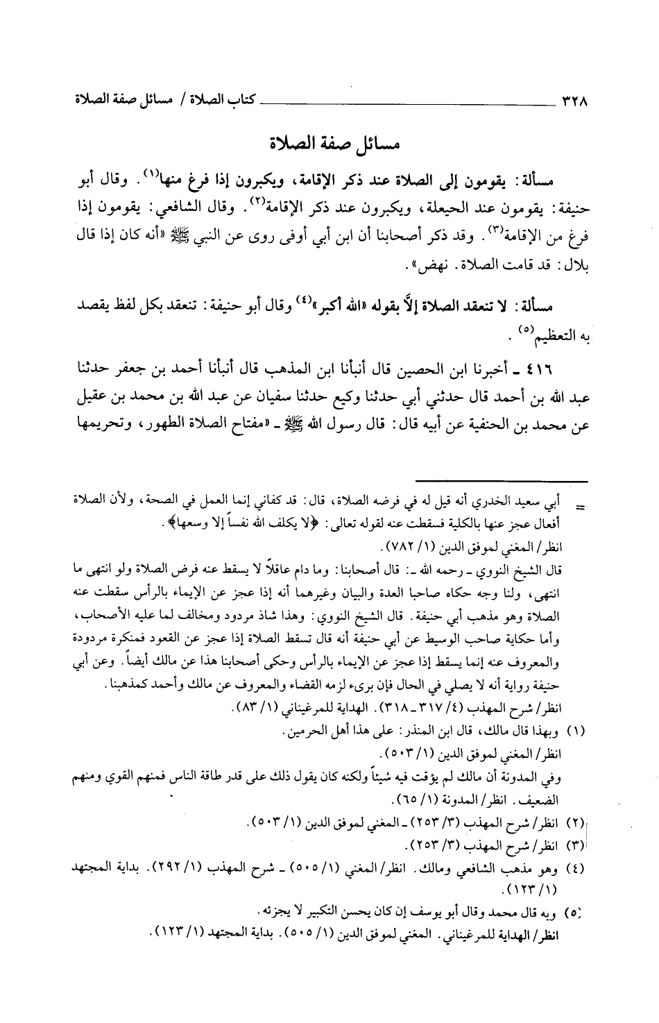مَسَائِلُ صِفَةُ الصَّلَاةِ