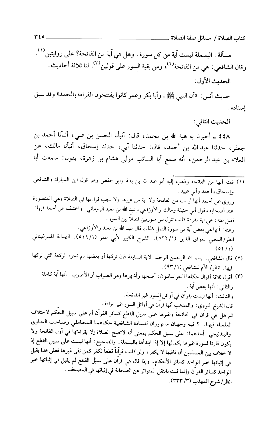حَدِيثُ أَنَسٍ أَنّ النَّبِيَّ صَلَّى اللَّهُ عَلَيْهِ وَسَلَّمَ وَأَبَا بَكْرٍ وَعُمَرَ كَانُوا يَفْتَتِحُونَ الْقِرَاءَةِ بِالْحَمْدِ وَقَدْ سَبَقَ إِسْنَادِهِ
