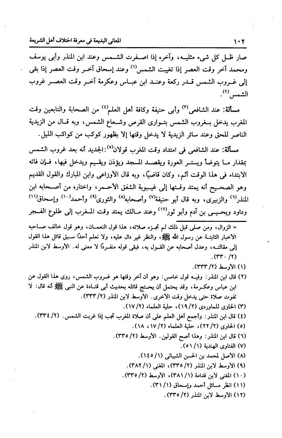 مَسْأَلَةٌ: عِنْدَ الشَّافِعِيِّ وأَبِي حَنِيفَةَ وكافة أهل العلم من الصحابة والتابعين وقت المغرب يدخل بغروب الشمس بتواري القرص وشعاع الشمس، وبه قال من الزَّيْدِيَّة النَّاصِر للحق وعند سائر الزَّيْدِيَّة لا يدخل وقتها إلا بظهور كوكب من كواكب الليل.