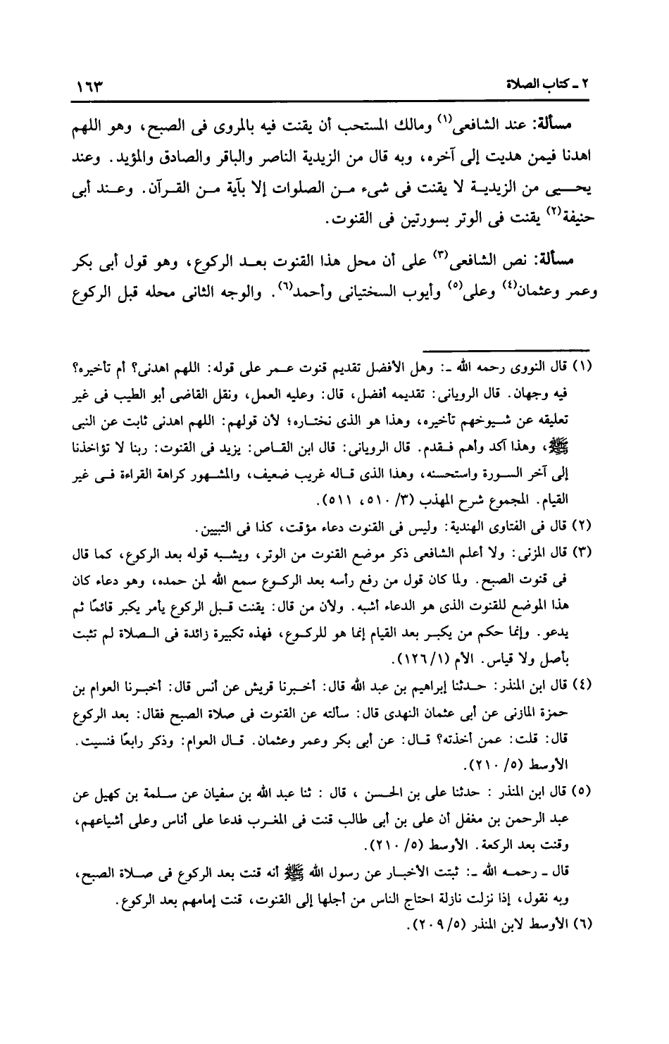مسألة: نص الشَّافِعِيّ على أن محل هذا القنوت بعد الركوع، وهو قول أبي بكر وعمر وعثمان وعلي وأيوب السختياني وَأَحْمَد. والوجه الثاني محله قبل الركوع