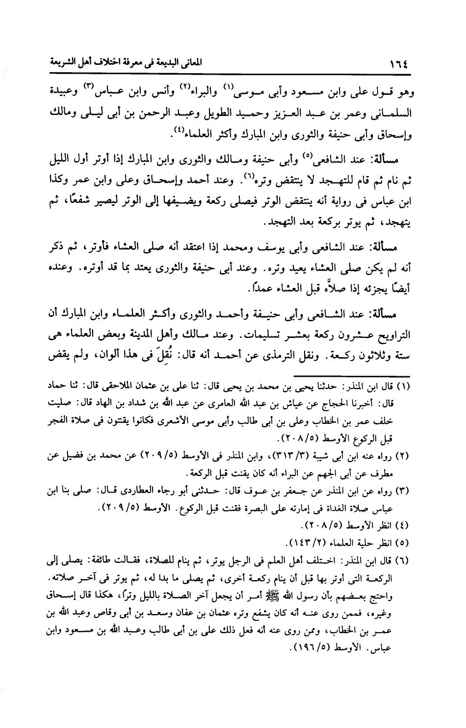 مَسْأَلَةٌ: عِنْدَ الشَّافِعِيِّ وأَبِي حَنِيفَةَ وَأَحْمَد والثَّوْرِيّ وأَكْثَر الْعُلَمَاءِ وابن الْمُبَارَك أن التراويح عشرون ركعة بعشر تسليمات. وعند مالك وأهل المدينة وبعض العلماء هي ستة وثلاثون ركعة. ونقل الترمذي عن أَحْمَد أنه قال: نُقِلَ في هذا ألوان، ولم يقض