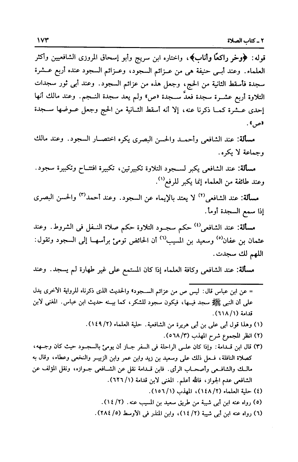 قوله: (وَخَرَّ رَاكِعًا وَأَنَابَ (24)، واختاره ابن سريج وأبو إِسْحَاق المروزي الشَّافِعِيّين وأكثر العلماء. وعند أَبِي حَنِيفَةَ هي من عزائم السجود، وعزائم السجود عنده أربع عشرة سجدة فأسقط الثانية من الحج، وجعل هذه من عزائم السجود. وعند أَبِي ثَورٍ سجدات التلاوة أربع عشرة سجدة فعد سجدة (ص) ولم يعد سجدة النجم. وعند مالك أنها إحدى عشرة كما ذكرنا عنه، إلا أنه أسقط الثانية من الحج وجعل عوضها سجدة (ص).