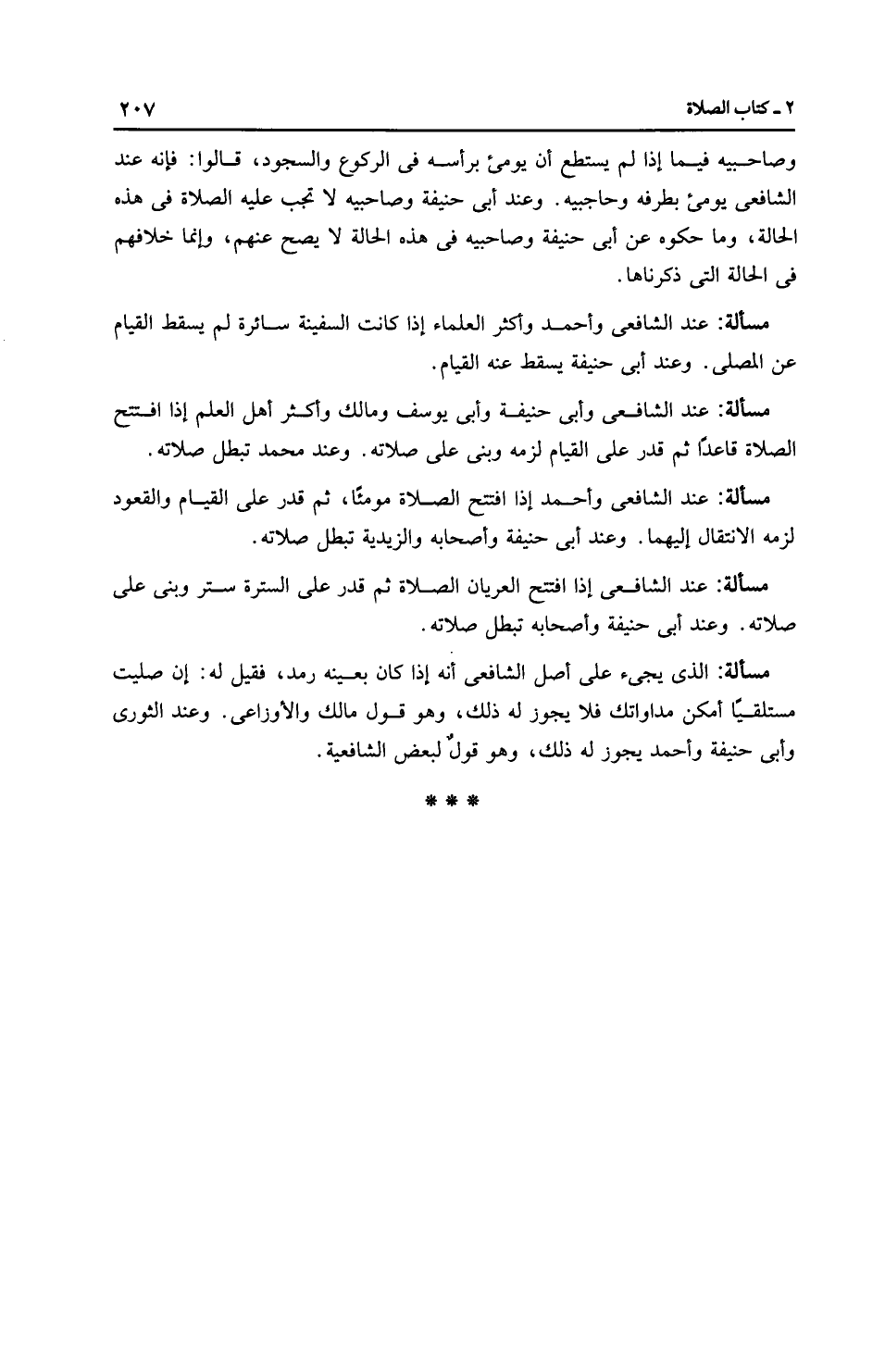 وصاحبيه فيما إذا لم يستطع أن يومئ برأسه في الركوع والسجود، قالوا: فإنه عند الشَّافِعِيّ يومئ بطرفه وحاجبيه. وعند أَبِي حَنِيفَةَ وصاحبيه لا تجب عليه الصلاة في هذه الحالة، وما حكوه عن أَبِي حَنِيفَةَ وصاحبيه في هذه الحالة لا يصح عنهم، وإنما خلافهم فى الحالة التي ذكرناها.
