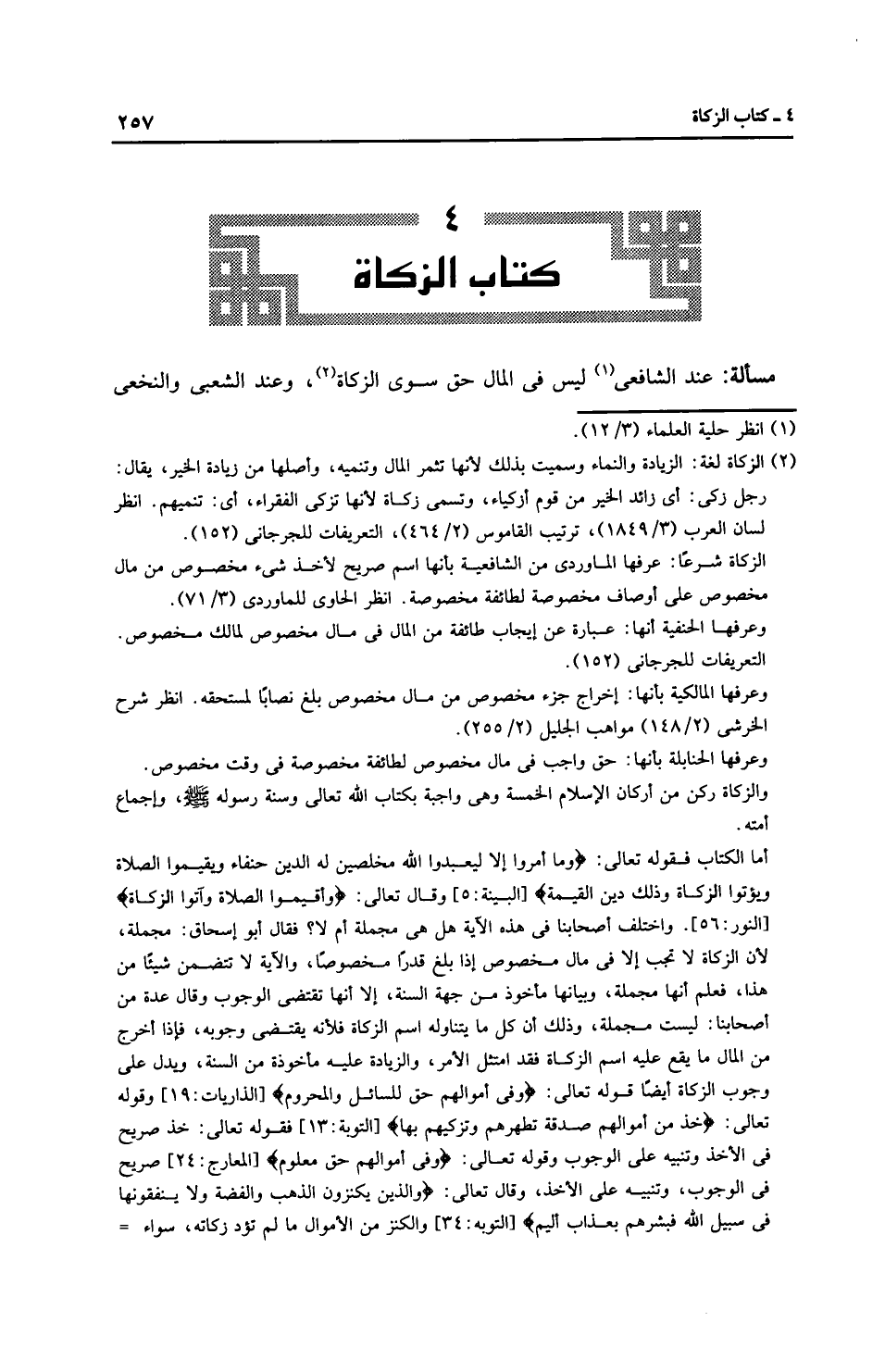مَسْأَلَةٌ: عِنْدَ الشَّافِعِيِّ ليس في المال حق سوى الزكاة، وعند الشعبي والنَّخَعِيّ