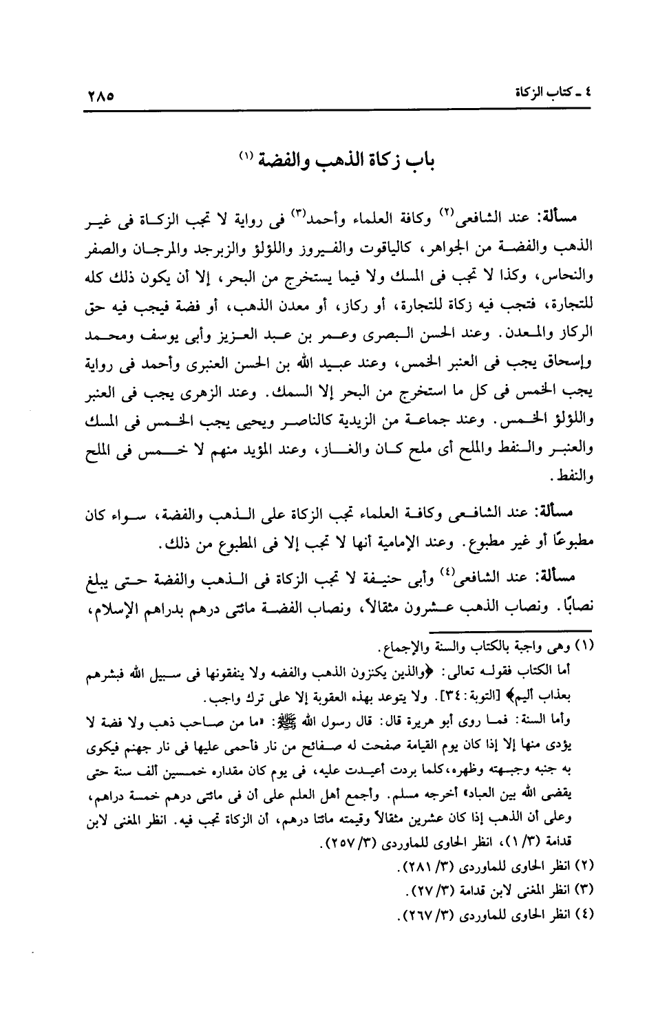 مَسْأَلَةٌ: عِنْدَ الشَّافِعِيِّ وكافة العلماء تجب الزكاة على الذهب والفضة، سواء كان مطبوعًا أو غير مطبوع. وعند الْإِمَامِيَّة أنها لا تجب إلا في المطبوع من ذلك.