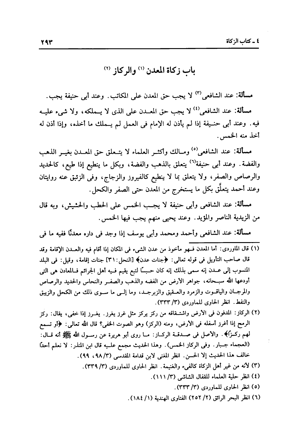 مَسْأَلَةٌ: عِنْدَ الشَّافِعِيِّ وَأَحْمَدَ ومُحَمَّد وأَبِي يُوسُفَ إذا وجد في داره معدنًا ففيه ما في