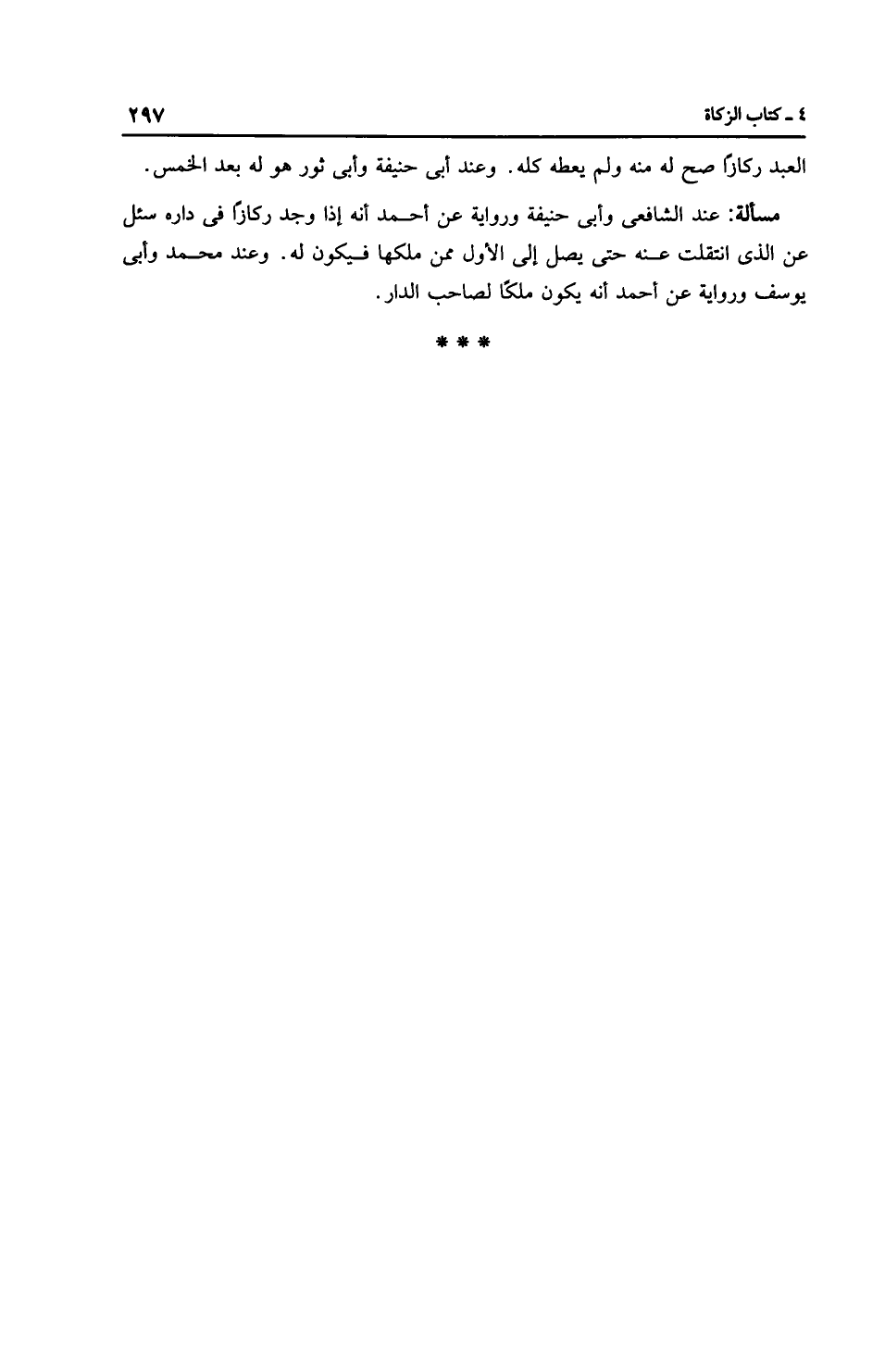 مَسْأَلَةٌ: عِنْدَ الشَّافِعِيِّ وأَبِي حَنِيفَةَ ورِوَايَة عن أَحْمَد أنه إذا وجد ركازًا في داره سئل عن الذي انتقلت عنه حتى يصل إلى الأول ممن ملكها فيكون له. وعند مُحَمَّد وأبي يوسف ورِوَايَة عن أَحْمَد أنه يكون ملكًا لصاحب الدار.