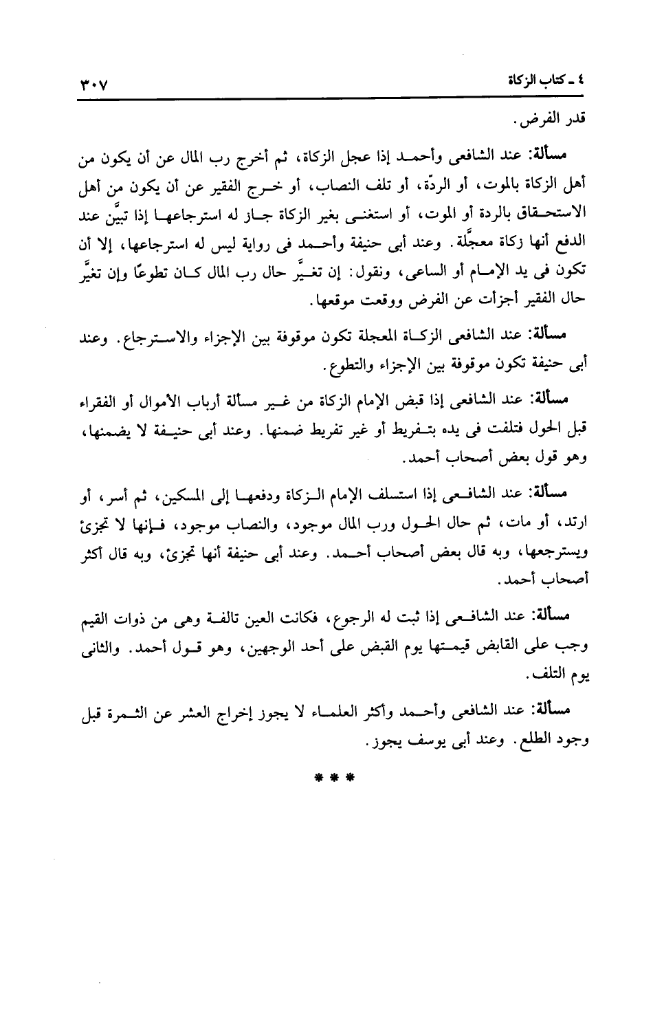 مَسْأَلَةٌ: عِنْدَ الشَّافِعِيِّ الزكاة المعجلة تكون موقوفة بين الإجزاء والاسترجاع. وعند أَبِي حَنِيفَةَ تكون موقوفة بين الإجزاء والتطوع.