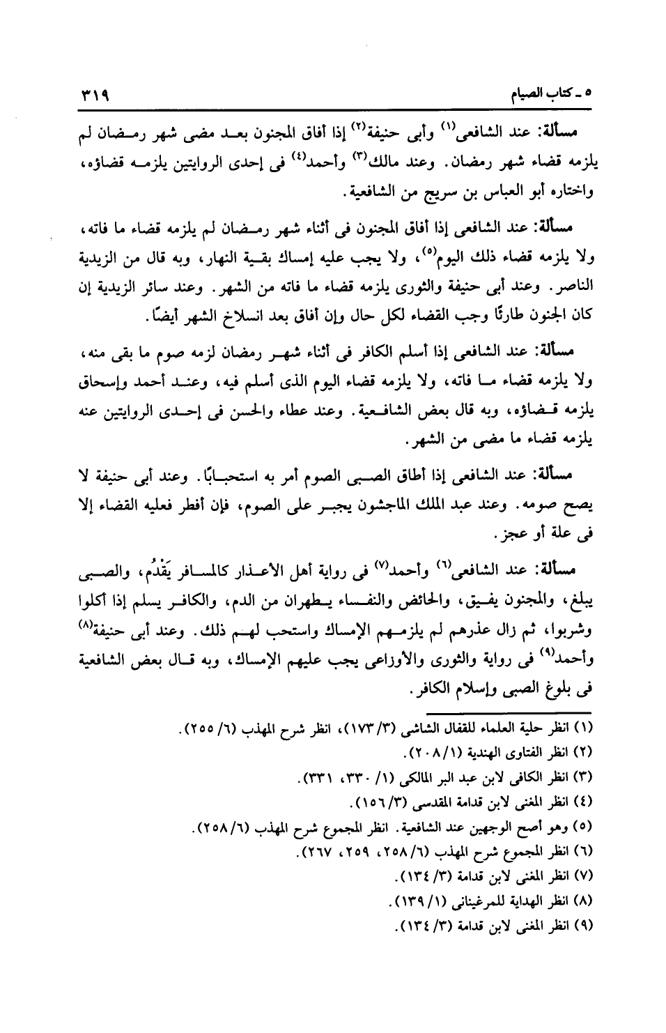مَسْأَلَةٌ: عِنْدَ الشَّافِعِيِّ وأَبِي حَنِيفَةَ إذا أفاق المجنون بعد مضي شهر رمضان لم يلزمه قضاء شهر رمضان. وعند مالك وَأَحْمَد في إحدى الروايتين يلزمه قضاؤه، واختاره أبو العبَّاس بن سريج من الشَّافِعِيَّة.