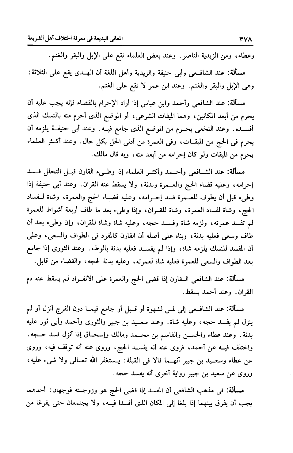 مَسْأَلَةٌ: عِنْدَ الشَّافِعِيِّ وأَبِي حَنِيفَةَ والزَّيْدِيَّة وأهل اللغة أن الهدْي يقع على الثلاثة: وهي الإبل والبقر والغنم. وعند ابن عمر لا تقع على الغنم.