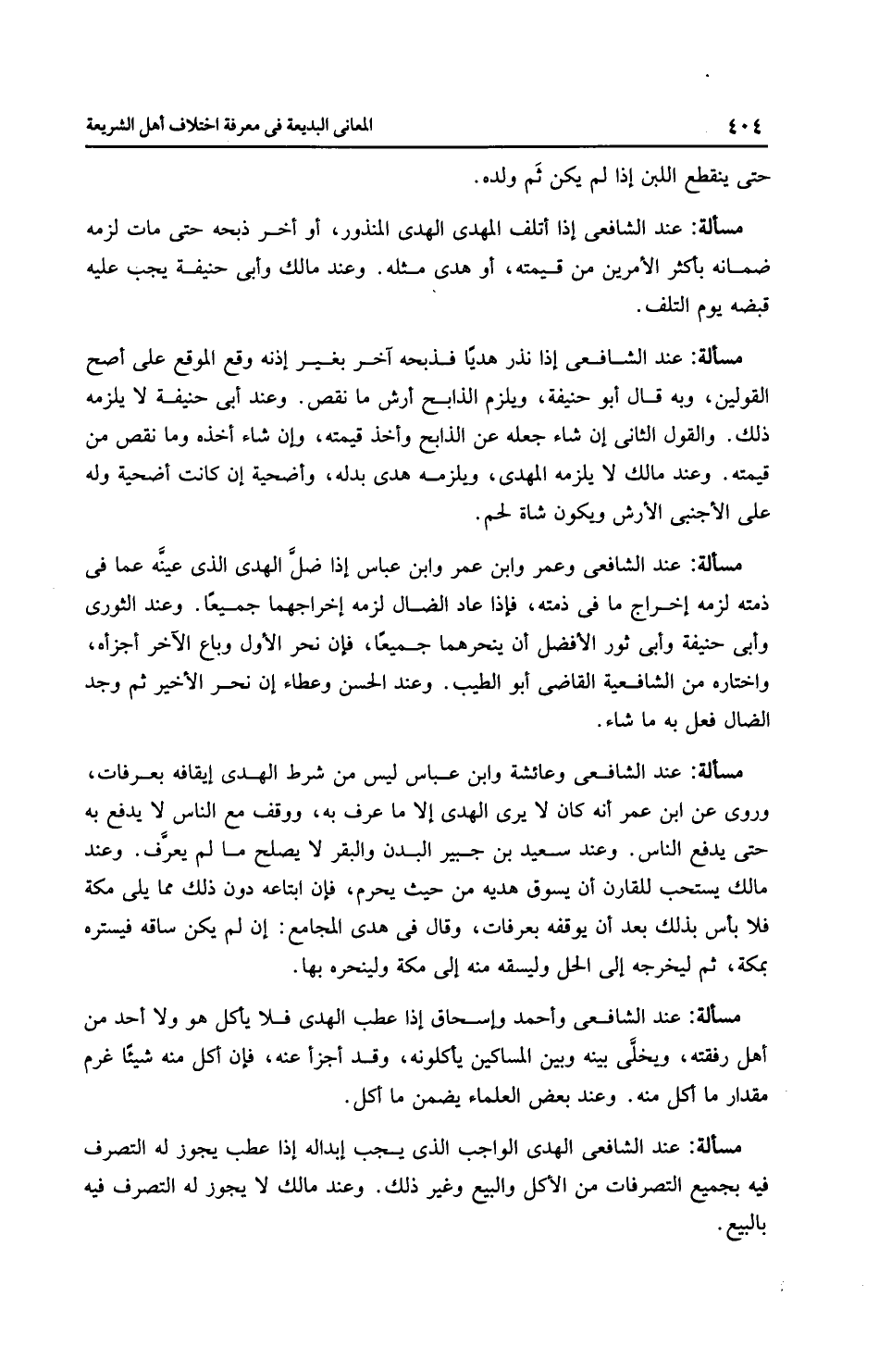 مَسْأَلَةٌ: عِنْدَ الشَّافِعِيِّ الهدْي الواجب الذي يجب إبداله إذا عطب يجوز له التصرف فيه بجميع التصرفات من الأكل والبيع وغير ذلك. وعند مالك لا يجوز له التصرف فيه بالبيع.