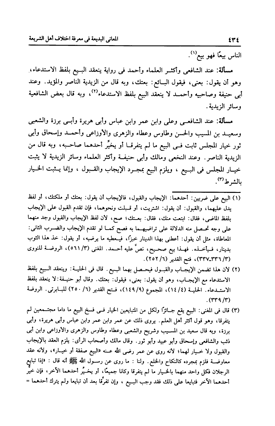 مَسْأَلَةٌ: عِنْدَ الشَّافِعِيِّ وأَكْثَر الْعُلَمَاءِ وَأَحْمَد في رِوَايَة ينعقد البيع بلفظ الاستدعاء، وهو أن يقول: بعني، فيقول البائع: بعتك، وبه قال من الزَّيْدِيَّة النَّاصِر والمؤيد. وعند أَبِي حَنِيفَةَ وصاحبيه وَأَحْمَد لا ينعقد البيع بلفظ الاستدعاء، وبه قال بعض الشَّافِعِيَّة وسائر الزَّيْدِيَّة.