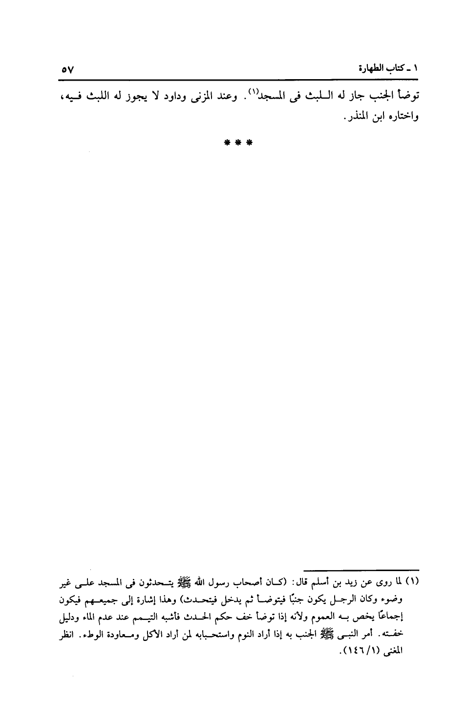توضأ الجنب جاز له اللبث في المسجد. وعند الْمُزَنِي وداود لا يجوز له اللبث فيه، واختاره ابن المنذر.