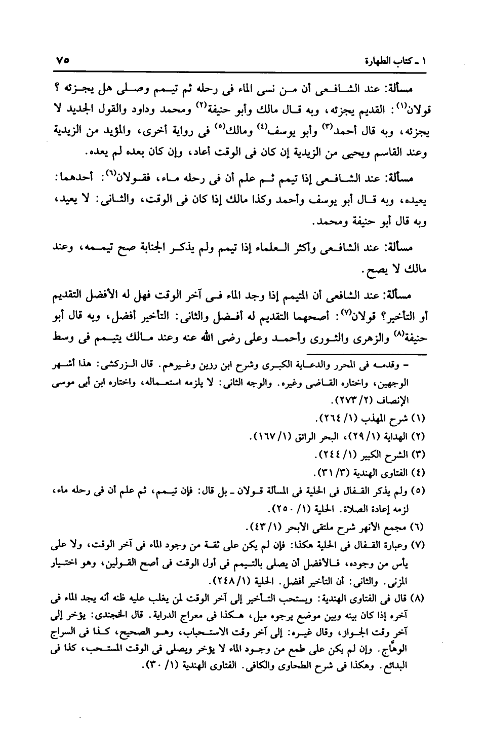 مَسْأَلَةٌ: عِنْدَ الشَّافِعِيِّ أن من نسي الماء في رحله ثم تيمم وصلى هل يجزئه؟ قَوْلَانِ: القديم يجزئه، وبه قال مالك وأبو حَنِيفَةَ ومُحَمَّد وداود والقول الجديد لا يجزئه، وبه قال أَحْمَد وأبو يوسف وَمَالِك في رِوَايَة أخرى، والمؤيد من الزَّيْدِيَّة وعند القاسم ويَحْيَى من الزَّيْدِيَّة إن كان في الوقت أعاد، وإن كان بعده لم يعده.
