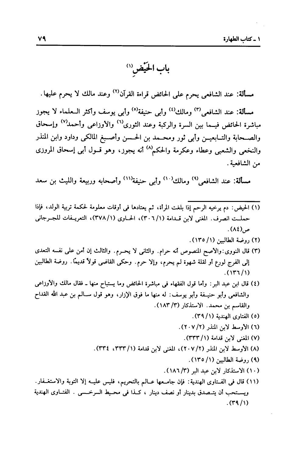 مَسْأَلَةٌ: عِنْدَ الشَّافِعِيِّ وَمَالِك وأَبِي حَنِيفَةَ وأَبِي يُوسُفَ وأَكْثَر الْعُلَمَاءِ لا يجوز مباشرة الحائض فيما بين السرة والركبة وعند الثَّوْرِيّ والْأَوْزَاعِيّ وَأَحْمَد وإِسْحَاق والصحابة والتابعين وأَبِي ثَورٍ ومُحَمَّد بن الحسن وأصبغ المالكي وداود وابن المنذر والنَّخَعِيّ والشعبي وعَطَاء وعكرمة والحكم أنه يجوز، وهو قول أبي إِسْحَاق المروزي من الشَّافِعِيَّة.