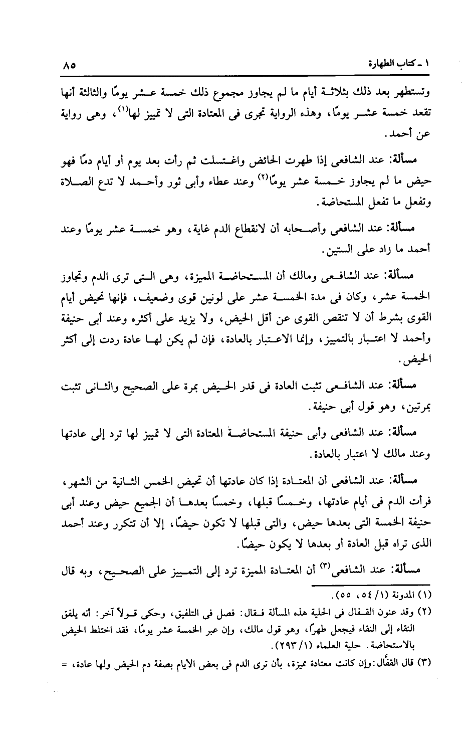 مَسْأَلَةٌ: عِنْدَ الشَّافِعِيِّ وأَبِي حَنِيفَةَ المستحاضة المعتادة التي لا تمييز لها ترد إلى عادتها وعند مالك لا اعتبار بالعادة.